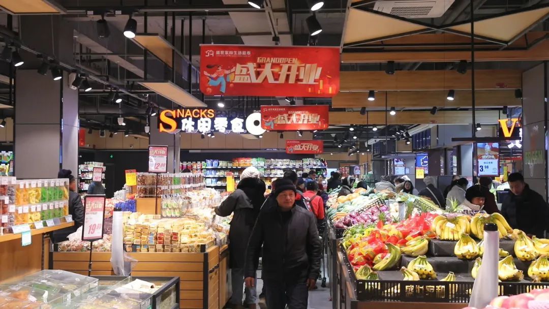 在瓜州县各大商超,各种迎新年活动营造出平安祥和的喜庆氛围,生鲜蛋奶、水果蔬菜、米面粮油等各类食品一应俱全、储备充足,礼品、零食等众多节日商品也摆放到了显眼位置,市民正在有序选购。