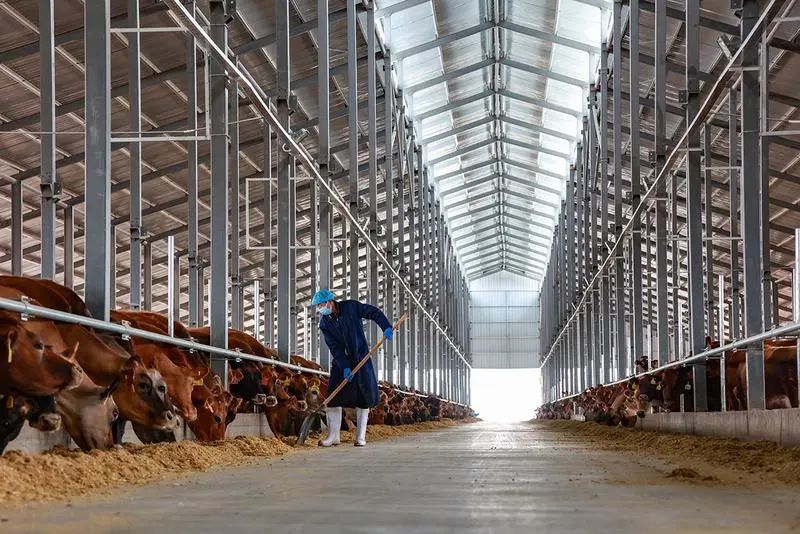 经过多年发展,张掖市培育了祁连牧歌、前进牧业等15家拥有“三品一标”的牛产业企业,引进了青海云鑫集团打造全国最大的娟姗牛养殖基地,百头以上奶肉牛规模牛场位居全省第一。经过4代改良选育的“河西肉牛”,耐粗饲、生长快、屠宰率(净肉率)高,食安检测药残和农残含量远低于国家标准,主要检测项目甚至为零,已成为中国四大肉牛核心产区西北产区的核心品种。主要以苜蓿饲养为主的张掖奶牛,生产的牛奶蛋白质含量比一般纯牛奶高1%、达到6%【一般纯牛奶蛋白质含量:3.2克/100ml,前进牛奶:3.5克/100ml】,口感好、认可度高,已成为全国重要的优质奶源基地。2018年以来,全市牛存栏年均增速达10.32%,年均出栏增速达11.13%。2023年,牛的饲养产值51亿元,占畜牧业产值109亿元的46.79%,占一年产值336亿元的15.18%,牛产业已成为现代农业发展的重要支撑。