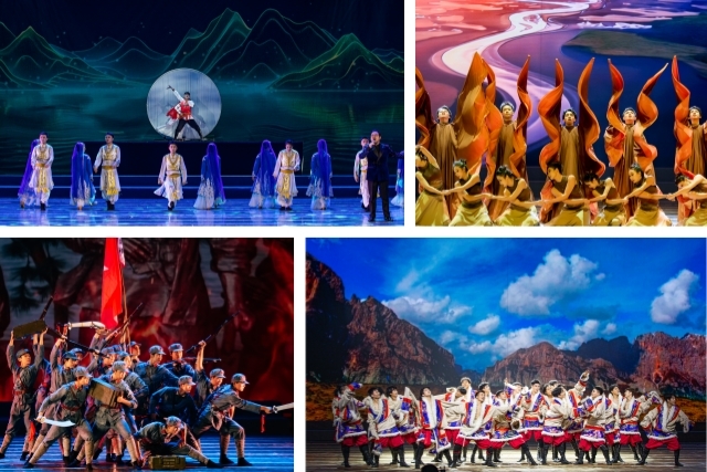 “大河奔流”板块中,舞蹈《黄河远上》,将诗人笔下“黄河远上白云间,一片孤城万仞山”的诗意与豪迈具象地展现在大开大合的男女群舞之中,观众为舞台上浪淘风簸与大河安澜相互交织的意境所沉醉。诗朗诵《两万五千里的麦浪》,生动诠释了中国共产党领导下的工农红军坚守信仰,谱写出豪情万丈的精神史诗,步履坚定铸就伟大的长征精神。歌曲《河州月》,将河州临夏夜空中皓月的阴晴圆缺幻化成最解风情的意象,与世人共享悲欢苦乐。舞蹈《雪域汉子》,展现出九色甘南的山水美景和能歌善舞的藏乡风情。
