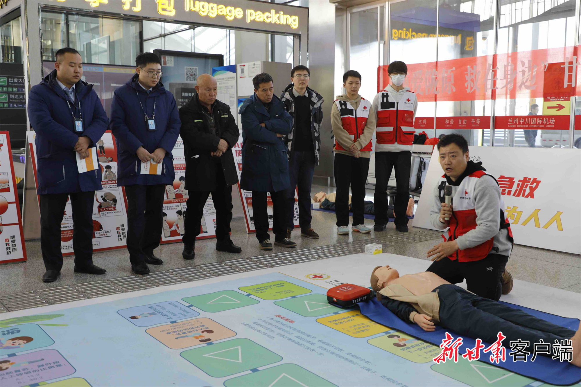 据了解,2025年春运启动后,甘肃省红十字会联合中国铁路兰州局集团有限公司、兰州中川国际机场有限公司,准备了14场红十字“急救地摊”活动。活动选址在中川机场、兰州西站等交通枢纽,目的是让出行的旅客在候机、候车的零碎时间里,有机会学习旅途中可能遇到的突发状况,如心脏骤停、气道异物梗阻等的应对方法,为旅客的出行安全增加一份保障。