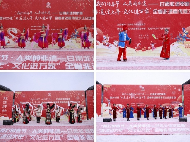 吕兴来指出,春节作为重要的非物质文化遗产和人人参与的文化实践形式,是构筑中华民族共有精神家园的重要载体,对中华文明的绵延赓续发挥了重要作用。2024年12月,我国申报的“春节——中国人庆祝传统新年的社会实践”成功列入联合国教科文组织人类非物质文化遗产代表作名录,值此申遗成功后的首个春节,甘肃省文化和旅游厅在武威市主办“我们的春节·人类的非遗——甘肃非遗贺新春”暨2025年“非遗过大年·文化进万家”非遗宣传展示主会场活动,拉开了全省2025年“非遗过大年·文化进万家”“非遗四季购物月”系列活动的序幕。
