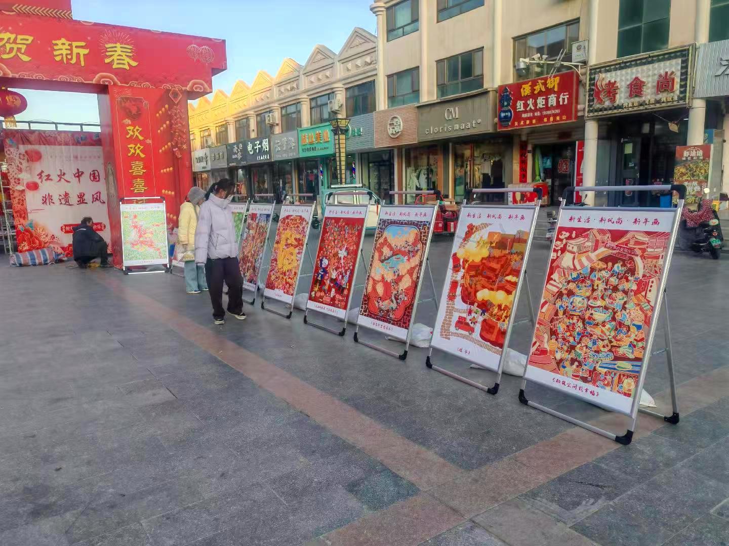 走进活动现场,装饰喜庆的年货摊位、琳琅满目的非遗商品让人目不暇接,浓浓的年味扑面而来。尤其是一张张色彩鲜艳、风格独特的年画,引得大家纷纷驻足观赏。人们纷纷被画中热闹的民俗场景、鲜活的人物深深吸引,或拿起手机记录或相互交流年画的内容,现场一派热闹景象。
