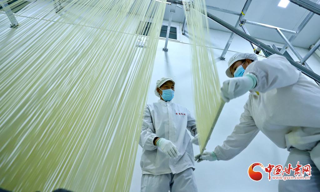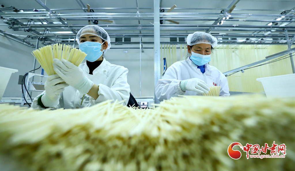 春节即将来临,1月20日,甘肃省张掖市民乐县三堡镇三堡村的手工挂面坊里格外热闹,工人们紧张有序地忙碌着,为广州、厦门、杭州、南京等地的客商加工订单挂面。