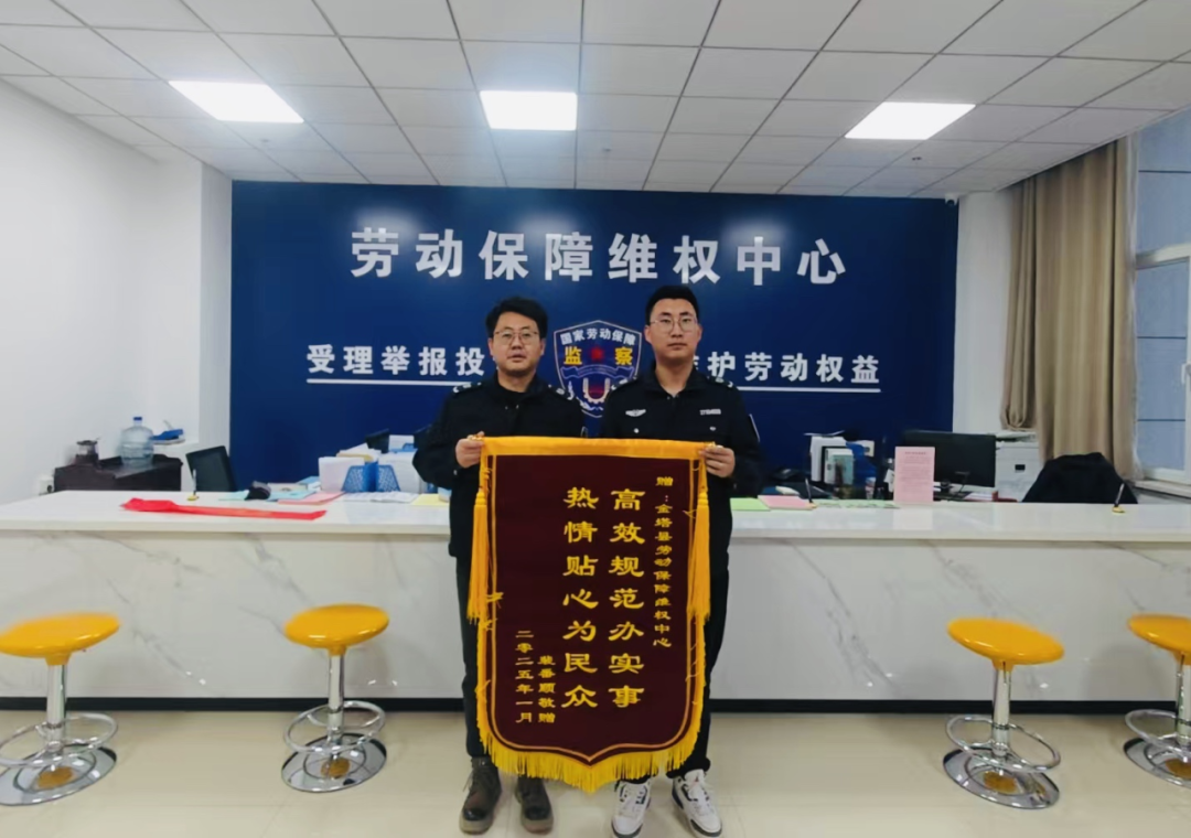 “高效规范办实事 热情贴心为民众”,近日,金塔县人社局劳动保障维权中心收到了群众送来的锦旗,感谢工作人员快速为他们追回欠薪15万余元。