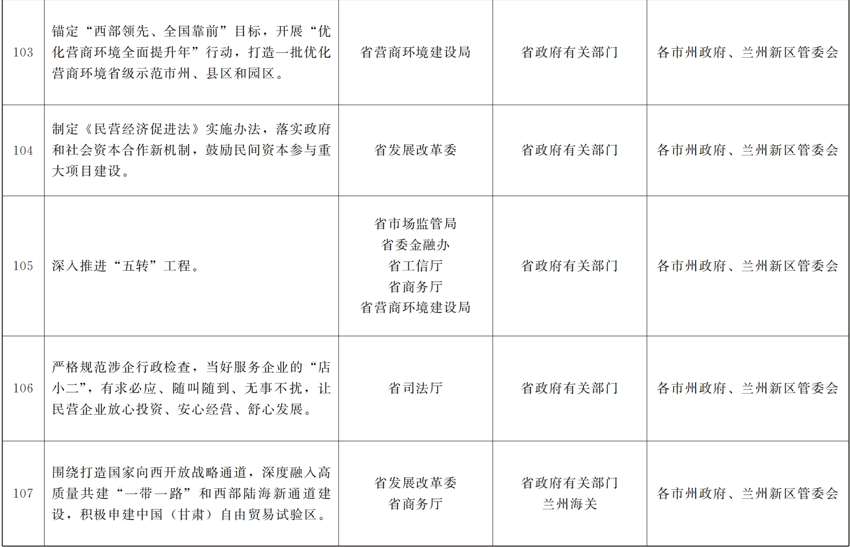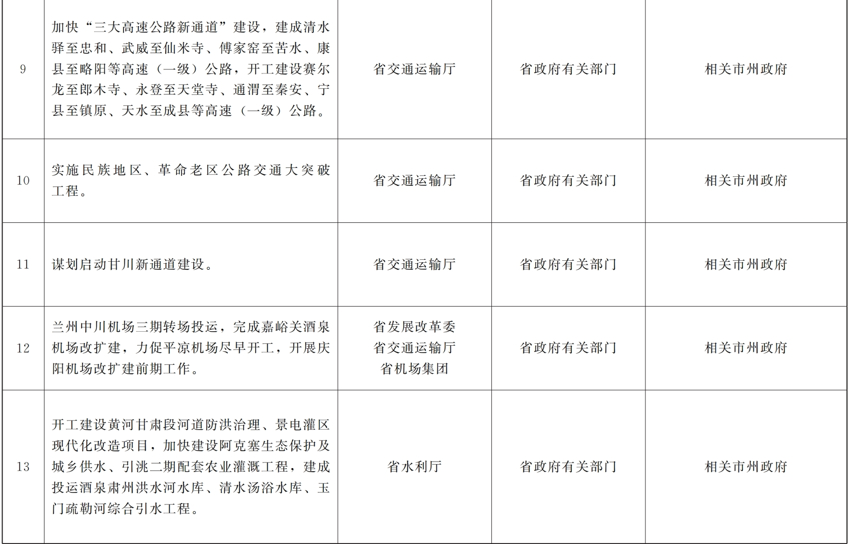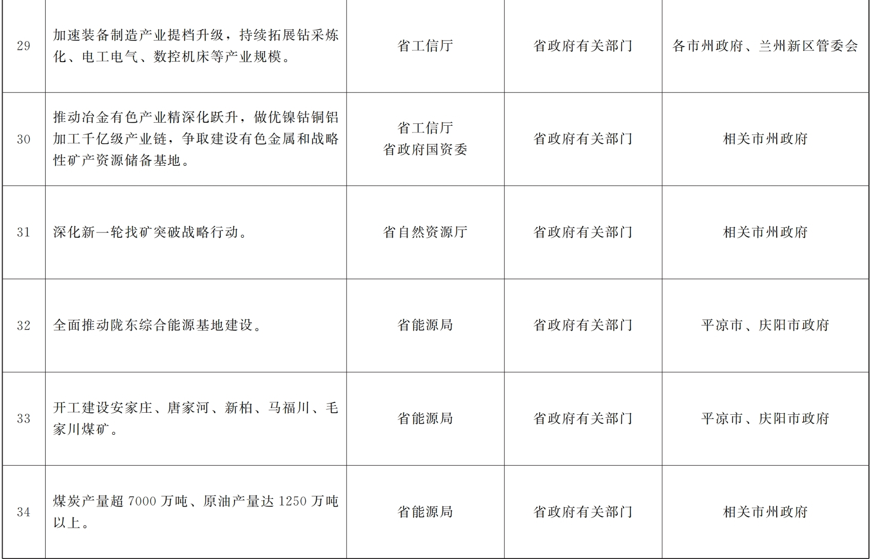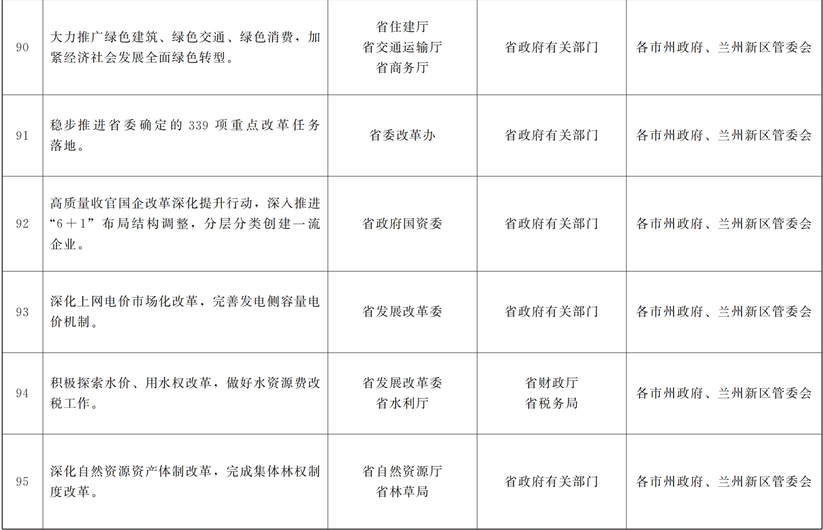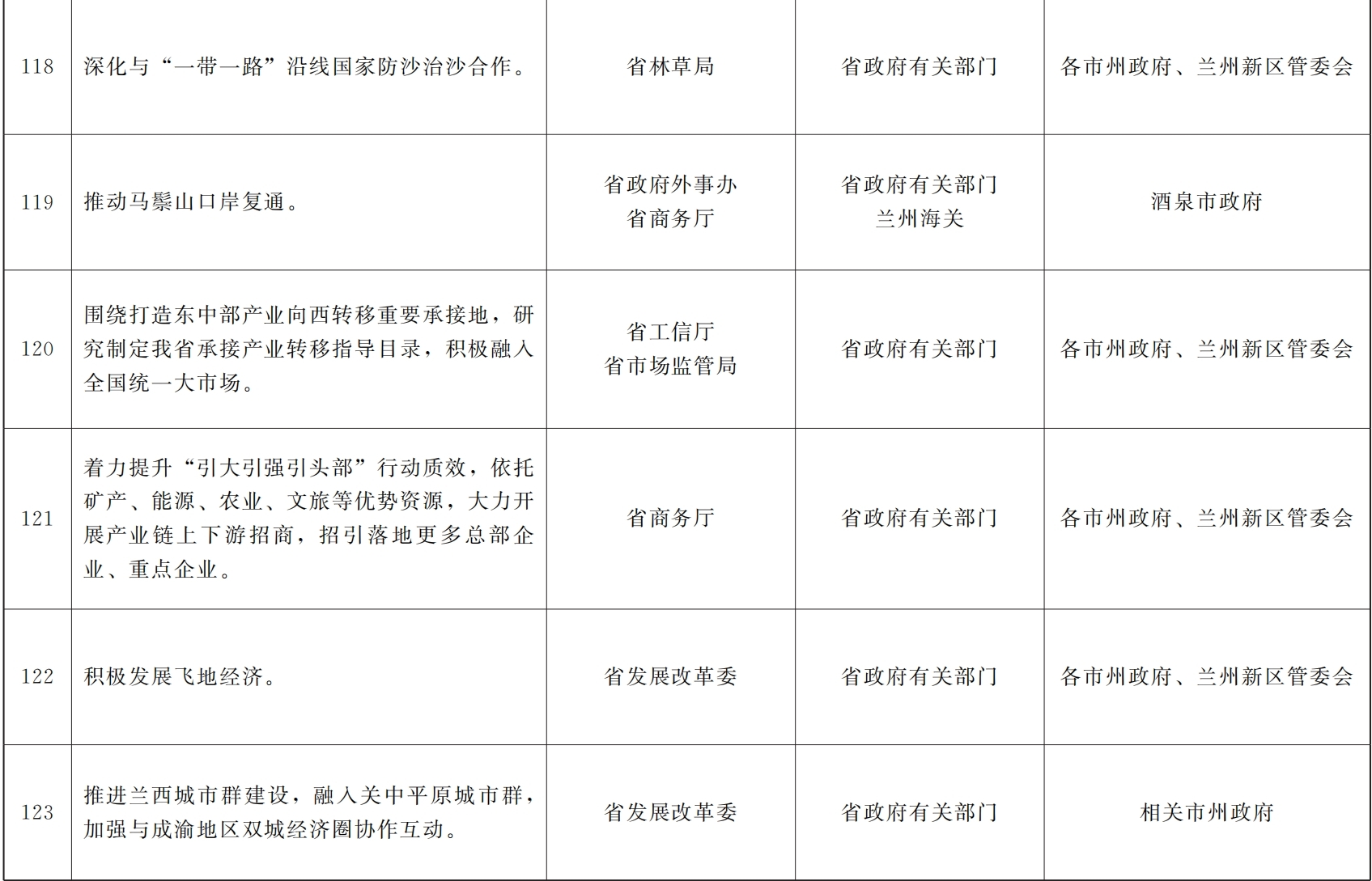 各市、自治州人民政府,甘肃矿区办事处,兰州新区管委会,省政府各部门,中央在甘各单位: