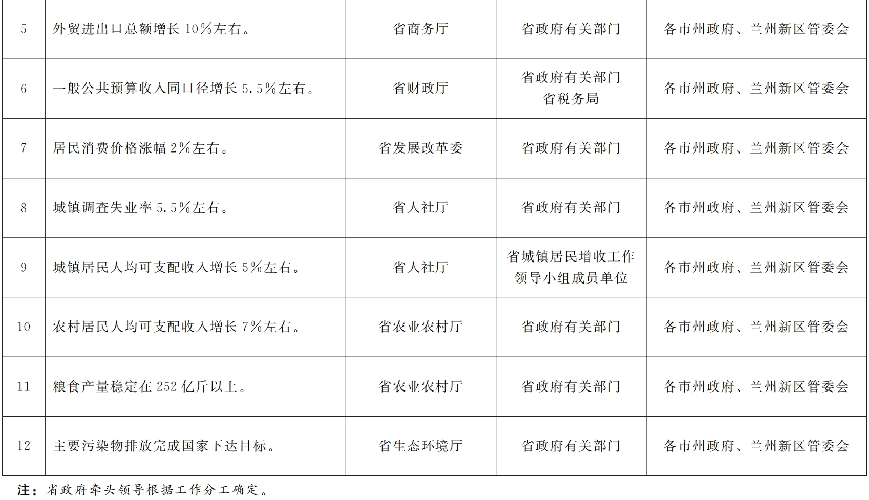 甘肃省人民政府关于分解落实《政府工作报告》主要目标和重点工作的通知.PDF