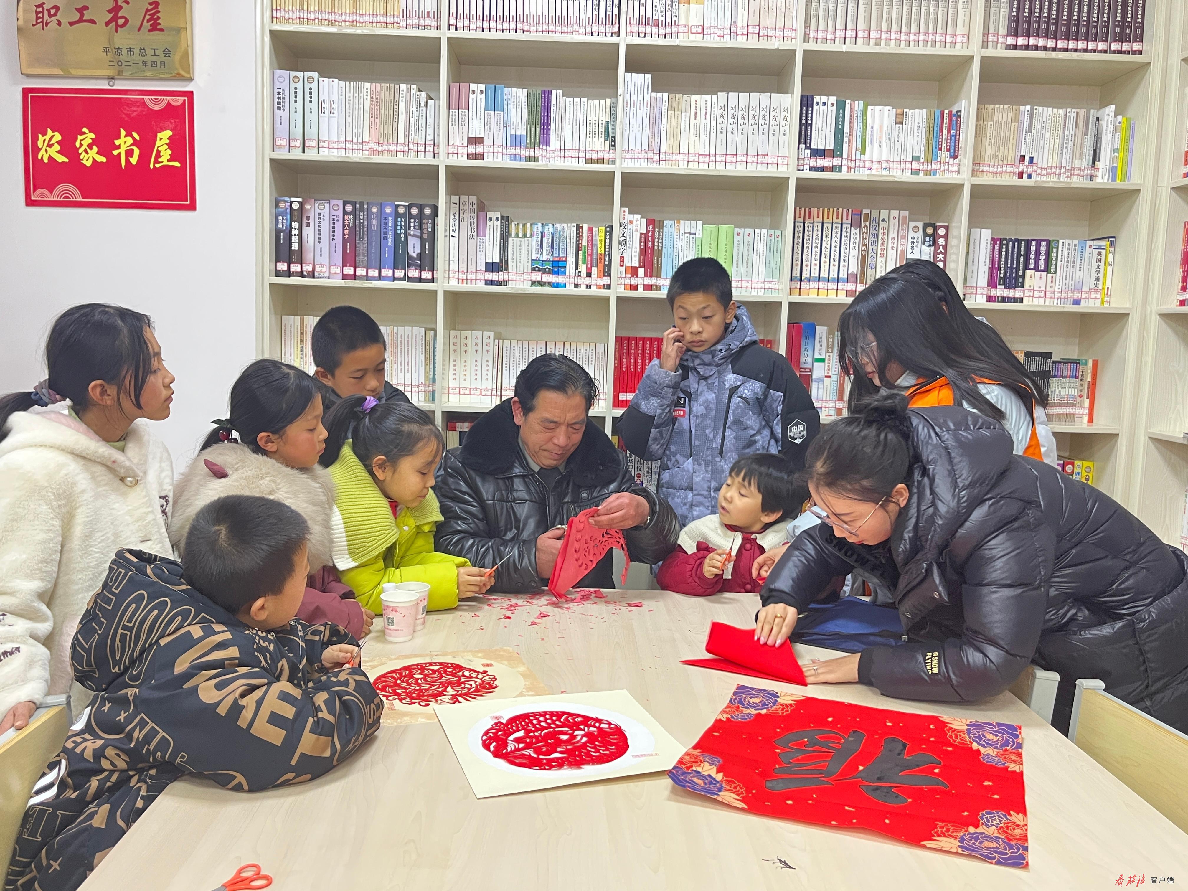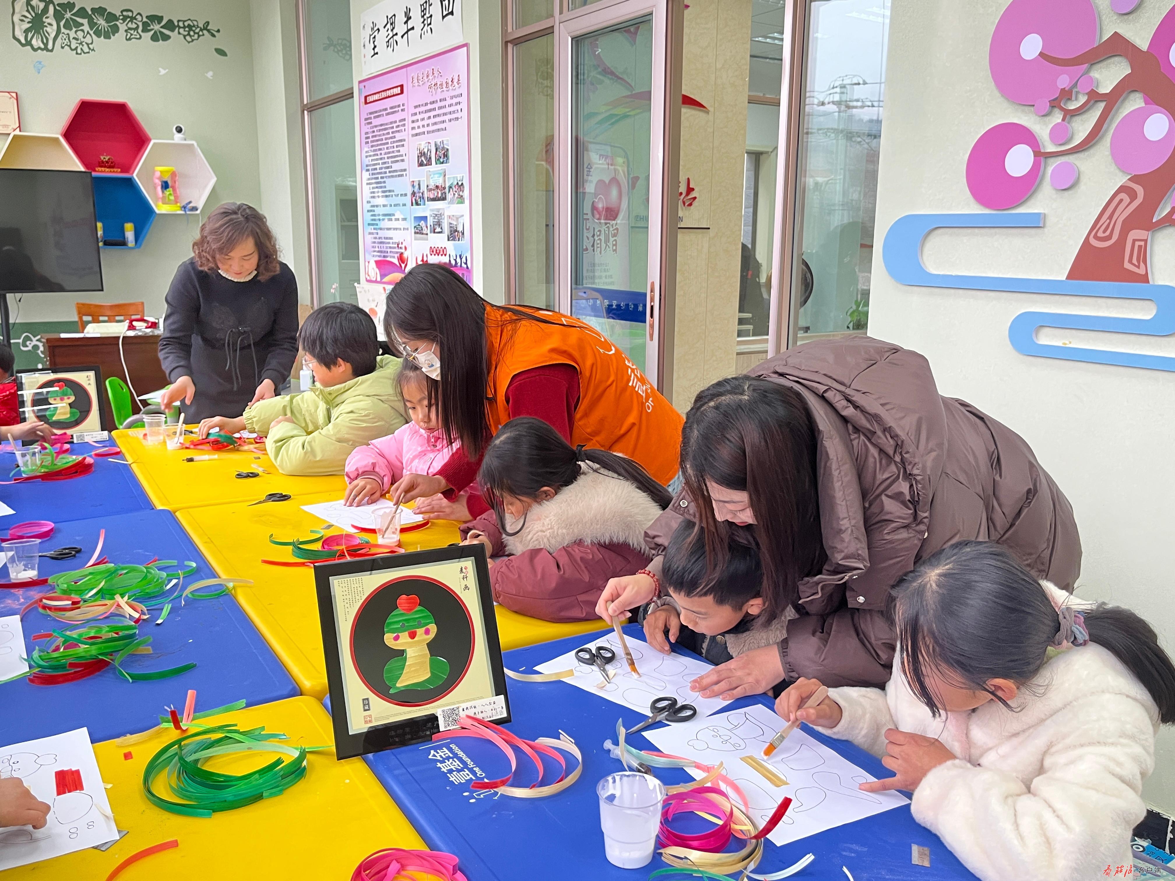 春节前夕,在庄浪县南城社区的儿童服务站里,欢声笑语、暖意融融。来自社区的十几名小朋友和志愿者们一起剪窗花、写对联、制作麦秆画,在别开生面的民俗体验活动中,感受浓郁年味和中华传统文化深厚魅力。