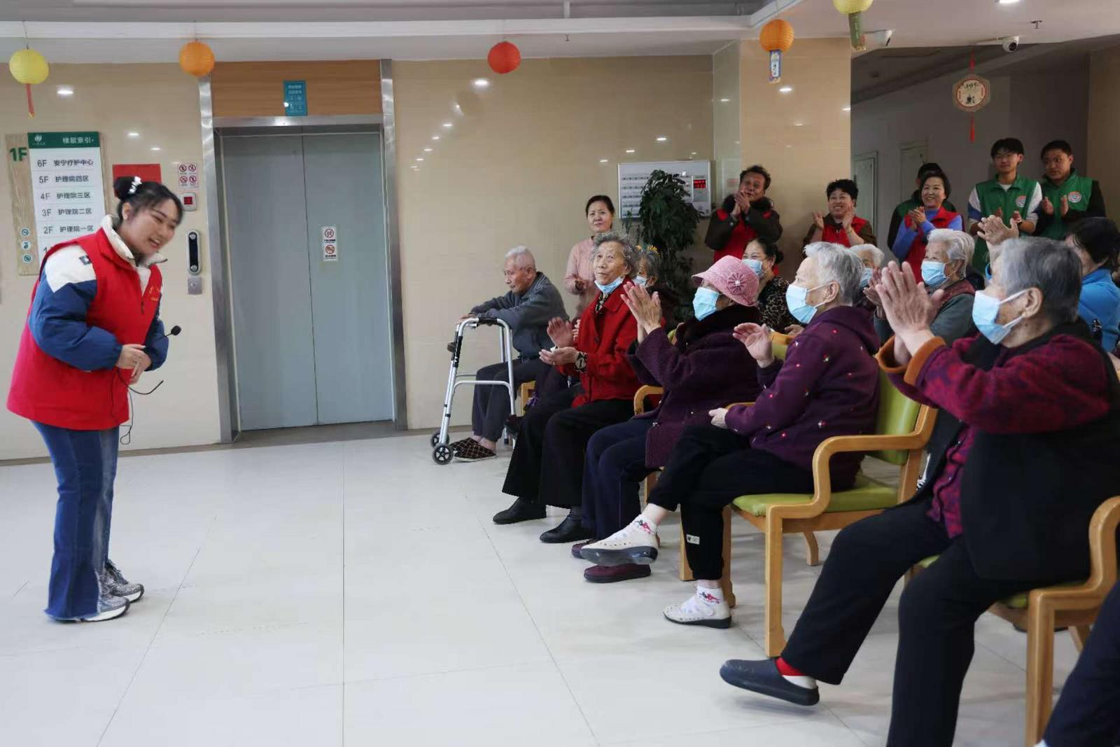 “爷爷奶奶们,元宵节快乐!”当日下午,志愿者们一踏入八冶医养公寓一楼大厅,便纷纷向正在看电视的老人们送上节日祝福,为老人们带来了精彩的表演。他们有的唱起了《新年快乐》《南泥湾》等歌曲,有的用兰州方言打起了快板,还有小学生志愿者带来了武术表演。随后,志愿者们分别前往各楼层独居老人和失能老人们的房间,为他们打扫卫生、洗头、洗脚、修剪指甲……