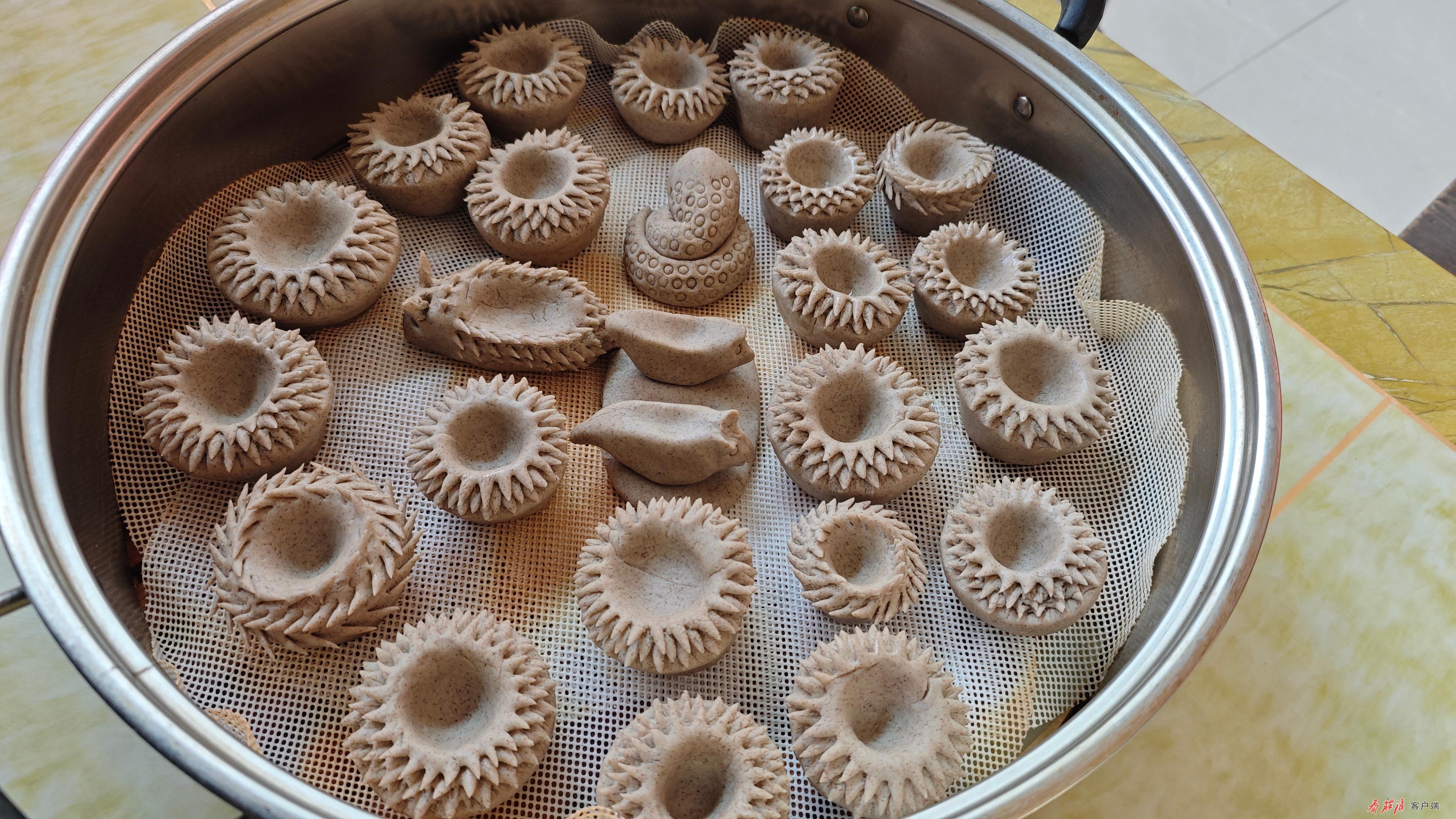 庄浪“灯盏”最常见的样式是莲花灯。莲花灯是在做成灯盏样式的面坯上,用剪刀剪出花边,放在蒸笼蒸熟,插上灯芯。根据灯盏摆放位置和含义的不同,“灯盏”的样式各异,有“生肖灯”“花灯”等。