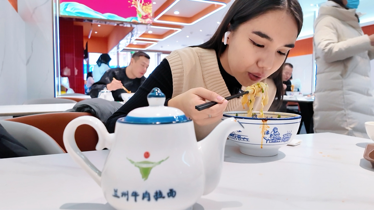 因为一碗面,爱上一座城。在兰州留学的日子里,这碗面已经成为了娜孜生活的日常。它不仅是一种食物,更是一种文化的象征,一种情感的寄托。“希望以后回到哈萨克斯坦,还能吃上正宗的兰州牛肉拉面。”娜孜满怀期待。这碗简单质朴但令人回味悠长的兰州牛肉拉面,于娜孜而言,是一段美好的回忆,是一段难忘的旅程,更是一段与兰州结下不解之缘的见证。
