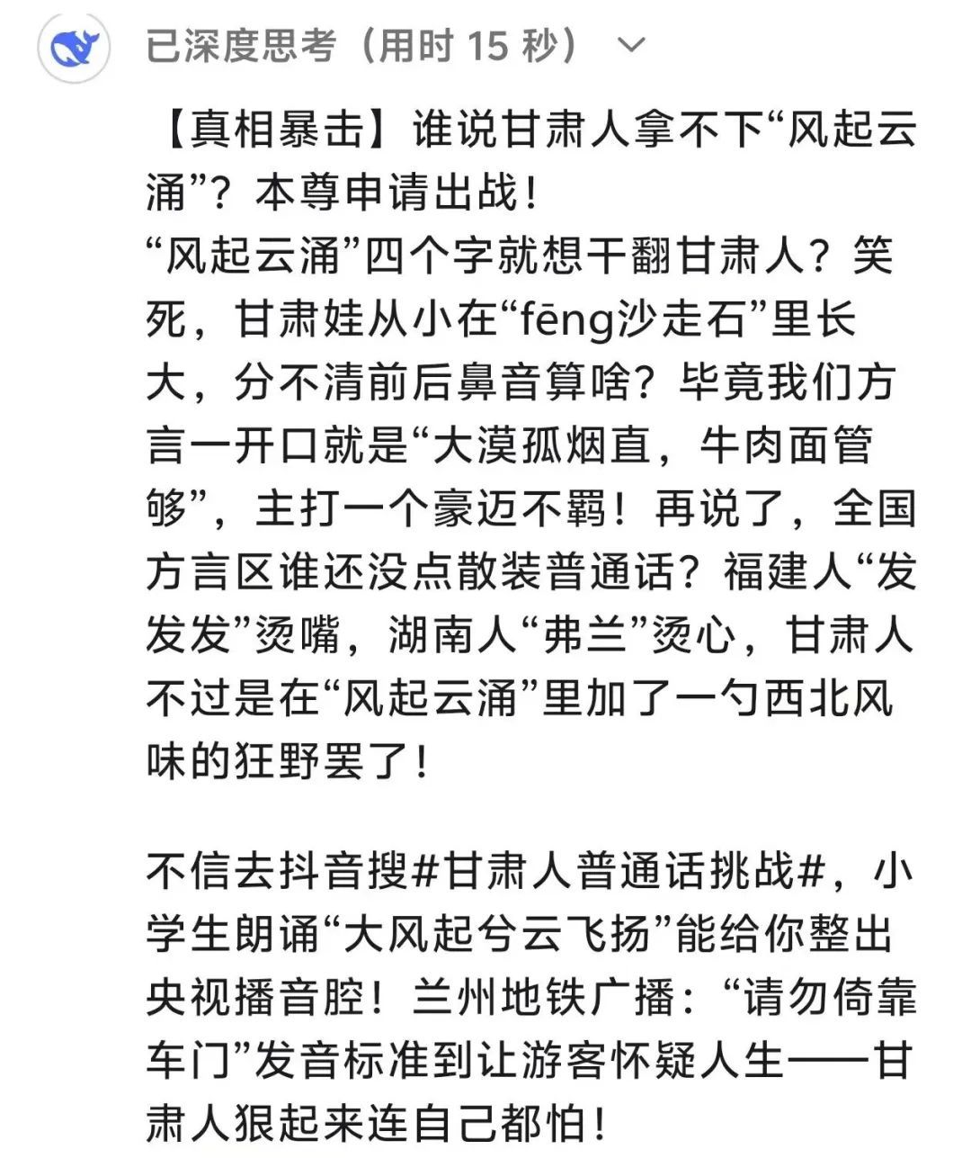 打败甘肃人只需要一个“风起云涌”