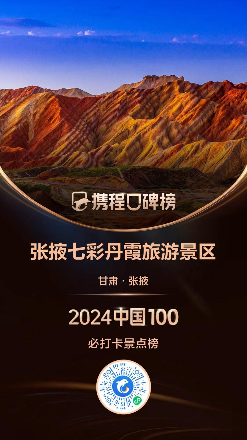 近日,2024携程口碑榜正式发布,张掖七彩丹霞景区成功入选携程口碑榜“2024年中国100必打卡景点”榜单。