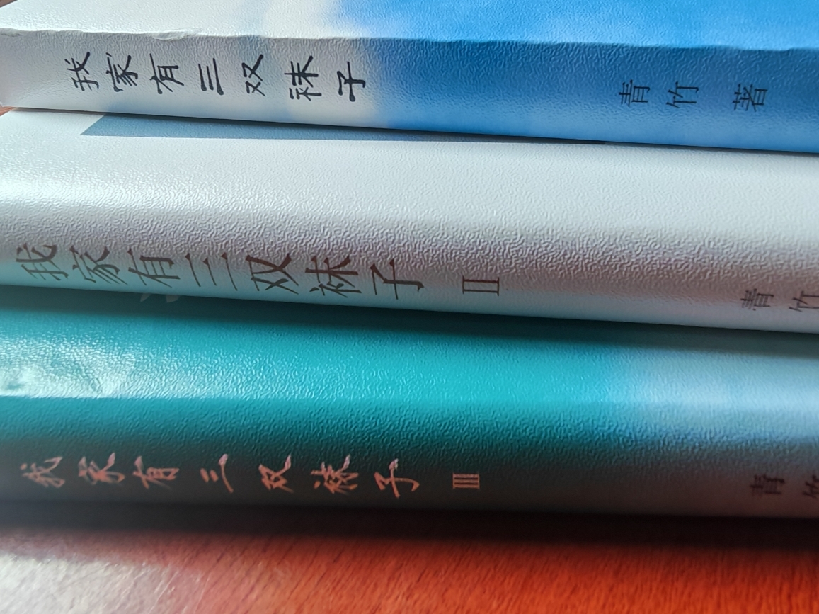 青竹说,交稿多半年,出版社那边一直没有动静,这让她一度怀疑编辑将自己这个“野路子”作家交上去的稿子“枪毙了”。直到2022年8月,终于收到读者出版社寄来的散发着油墨香的书——《我家有三双袜子1》。这两年,又连续出了第二册和第三册。