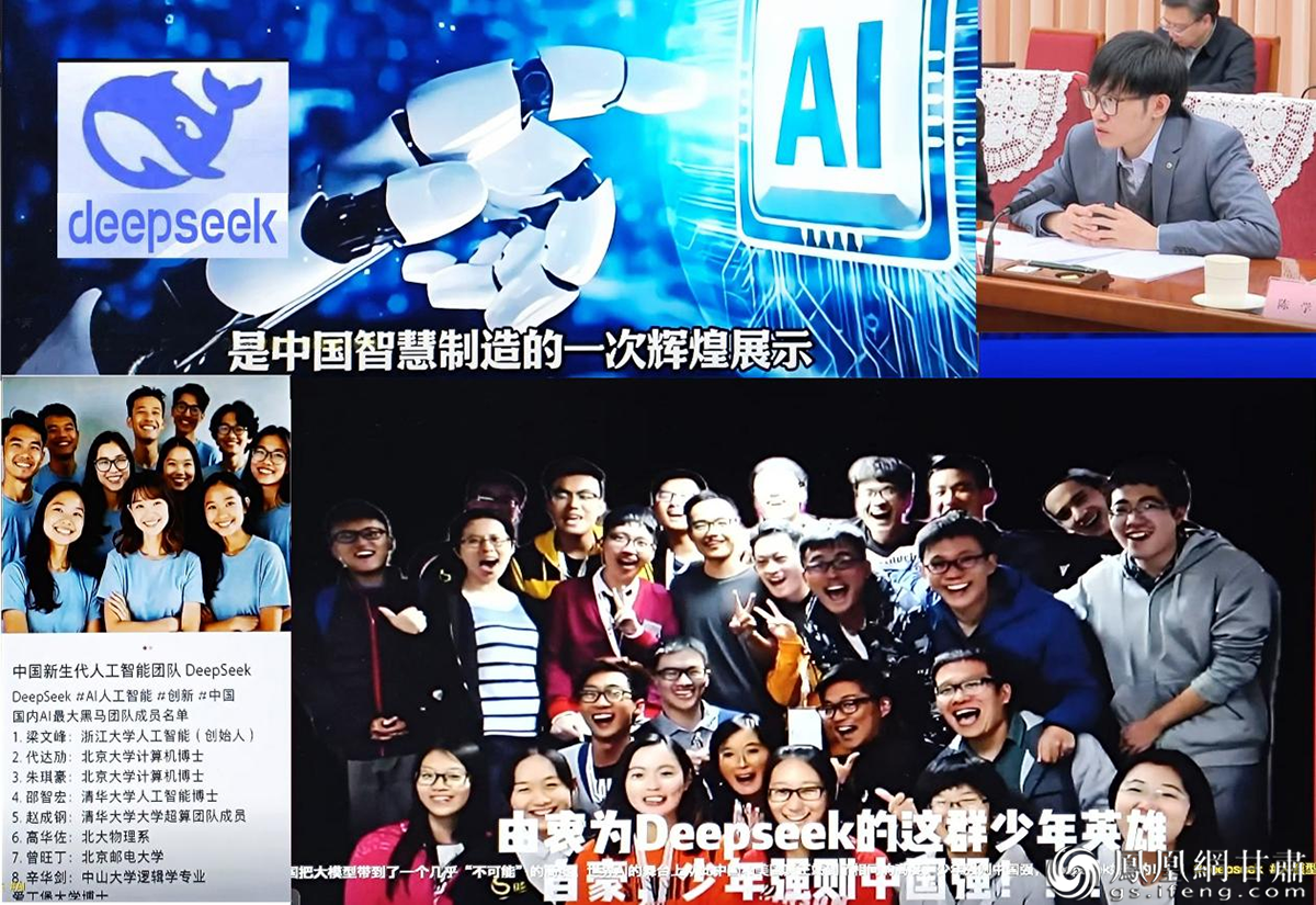 ⑤原乡爆火肩吞阔:原乡:祖居地、发祥地。此处指近期在中国智造与文化创意领域崭露头角的创业团队成员,大多是中国本土的青年才俊。其中,DeepSeek创始人梁文锋确立的不融资、不上市,不与美方合作的“三不”铁律最能体现这种原乡本色;
