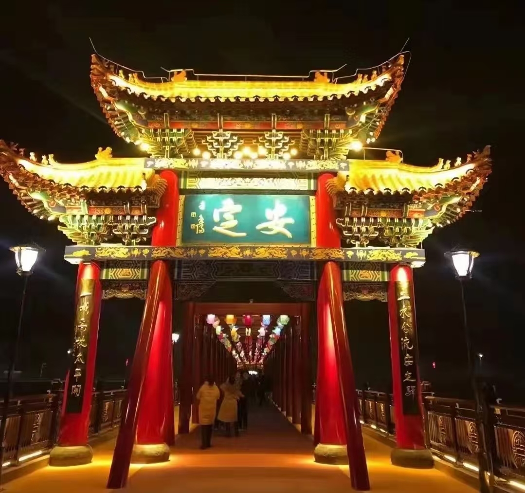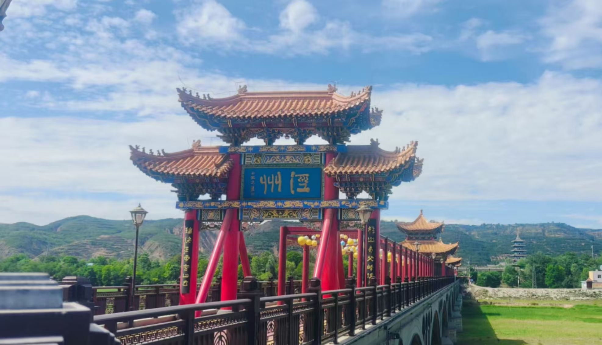 如今,泾河大桥与王母宫•大云寺景区遥相呼应,融为一体,互为增色。整个建筑彰显明清风格,体现古色古香的风韵,与泾川蜚声海内外的西王母文化和璀璨瑰丽的佛教文化相得益彰,成为泾川的“神来之笔”。