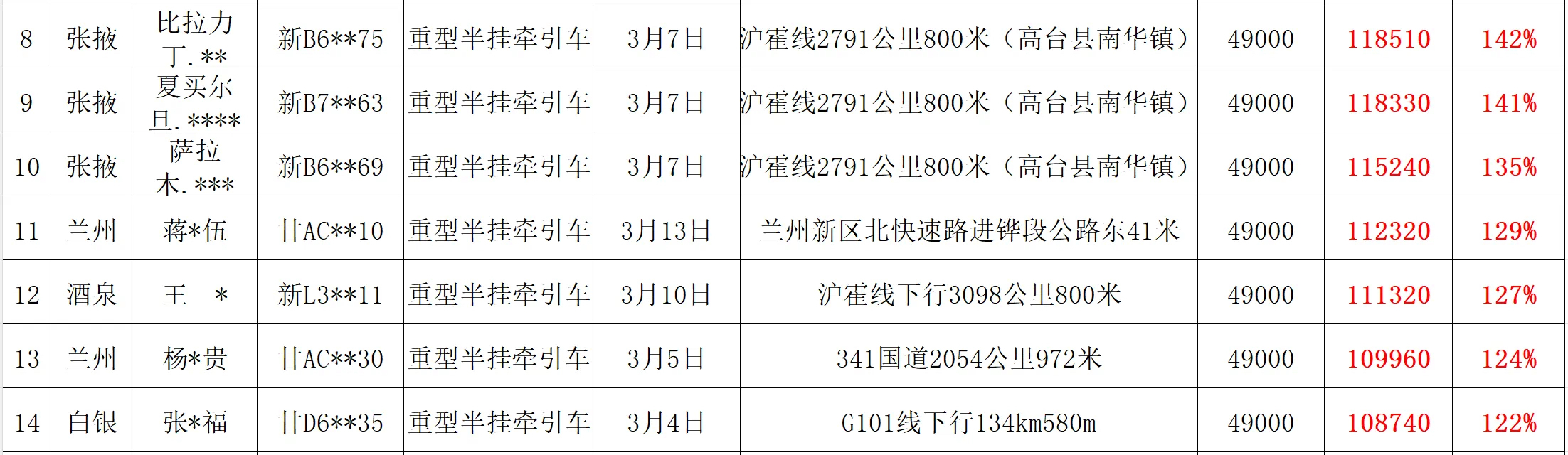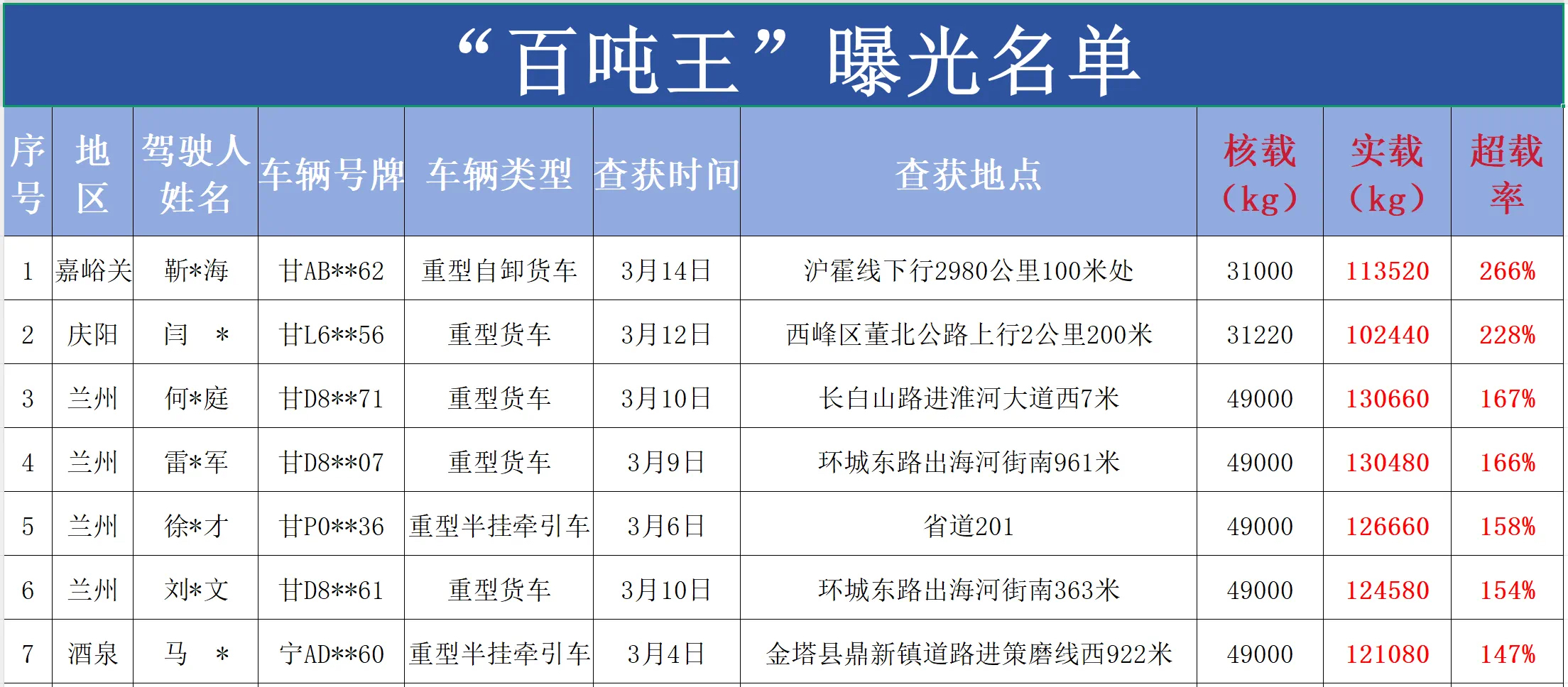 观澜新闻客户端讯(兰州日报社全媒体记者 颜维俊 葛强)近日,全省各级公安交管部门持续严查整治“百吨王”和重中型货车超载50%以上的严重交通违法行为,全力净化道路交通环境。甘肃公安交警将3月1日以来全省查处的19辆“百吨王”超载货运车辆予以警示曝光!希望广大货运车驾驶人引以为戒。