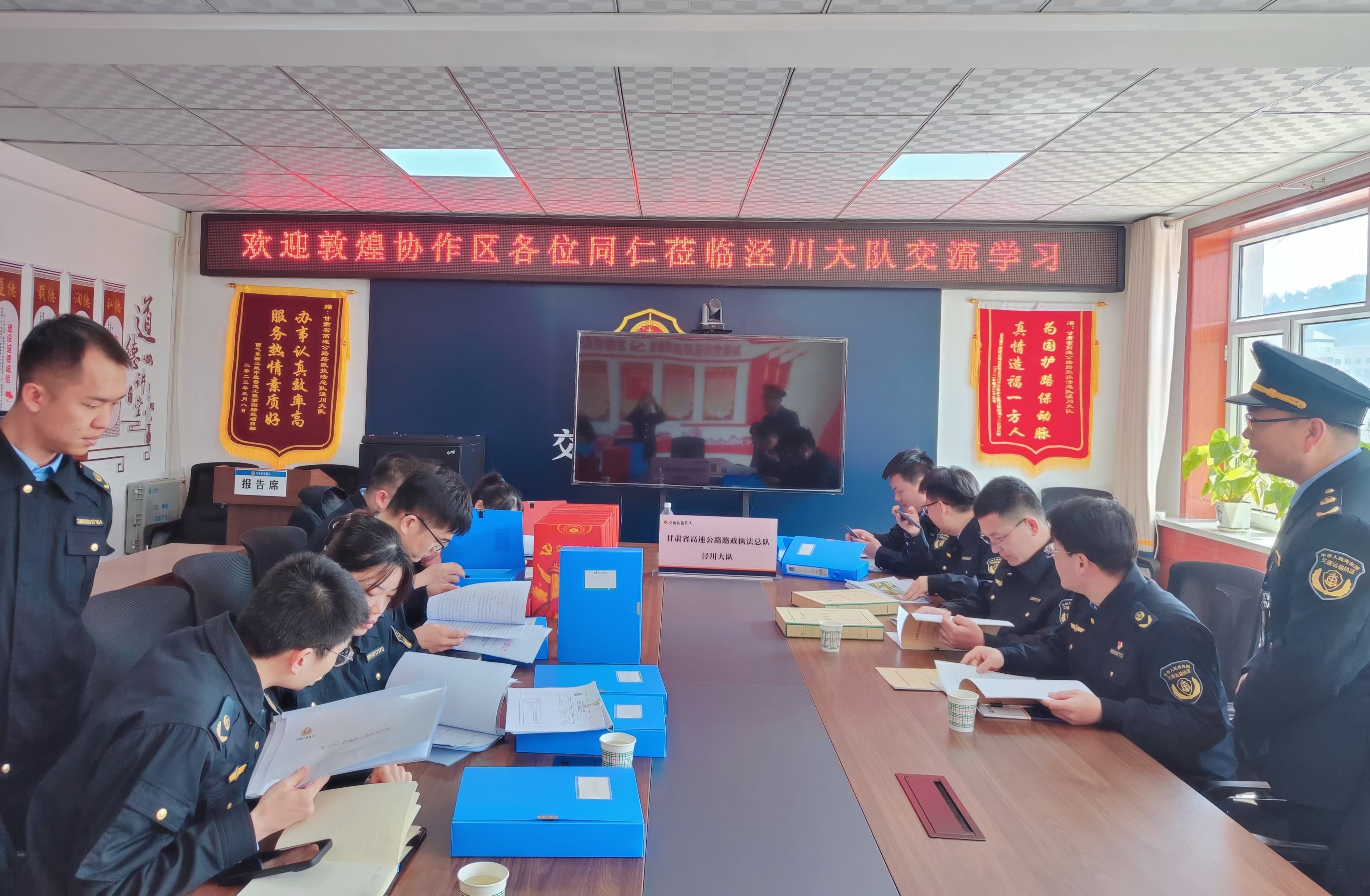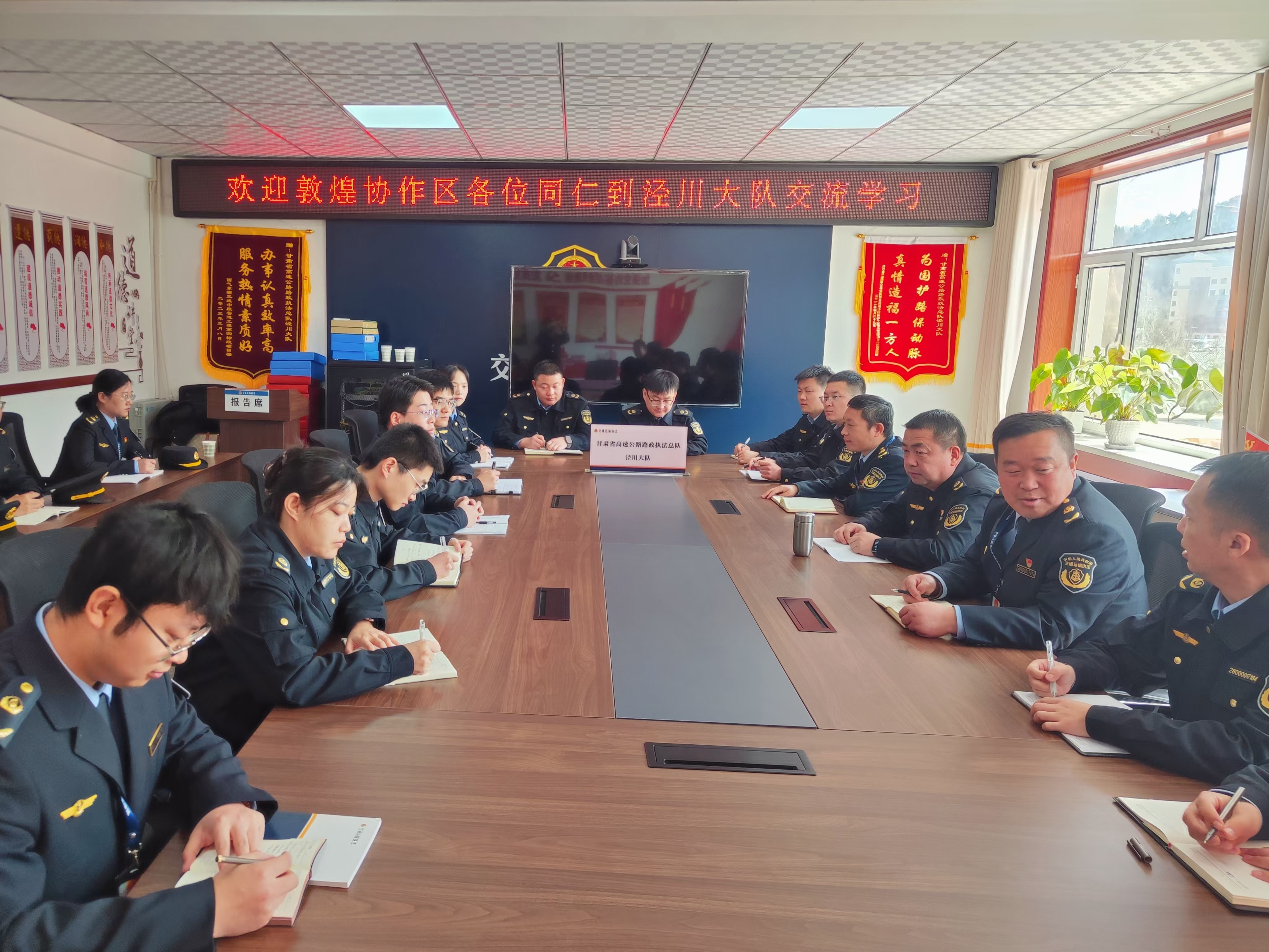 座谈会上,大家共同分享了日常工作中的思路和方法,泾川大队简要介绍了大队在日常工作中的创新举措和显著成效,敦煌协作区各大队同仁分享了此次交流学习的感悟。