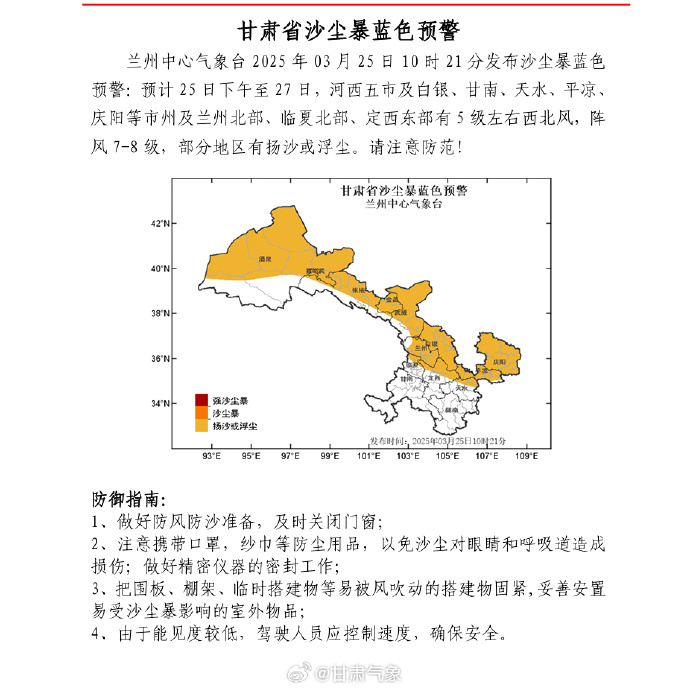 【甘肃省沙尘暴蓝色预警】