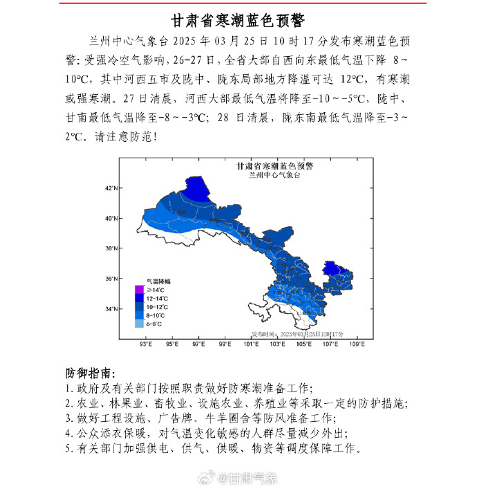 【甘肃省寒潮蓝色预警】