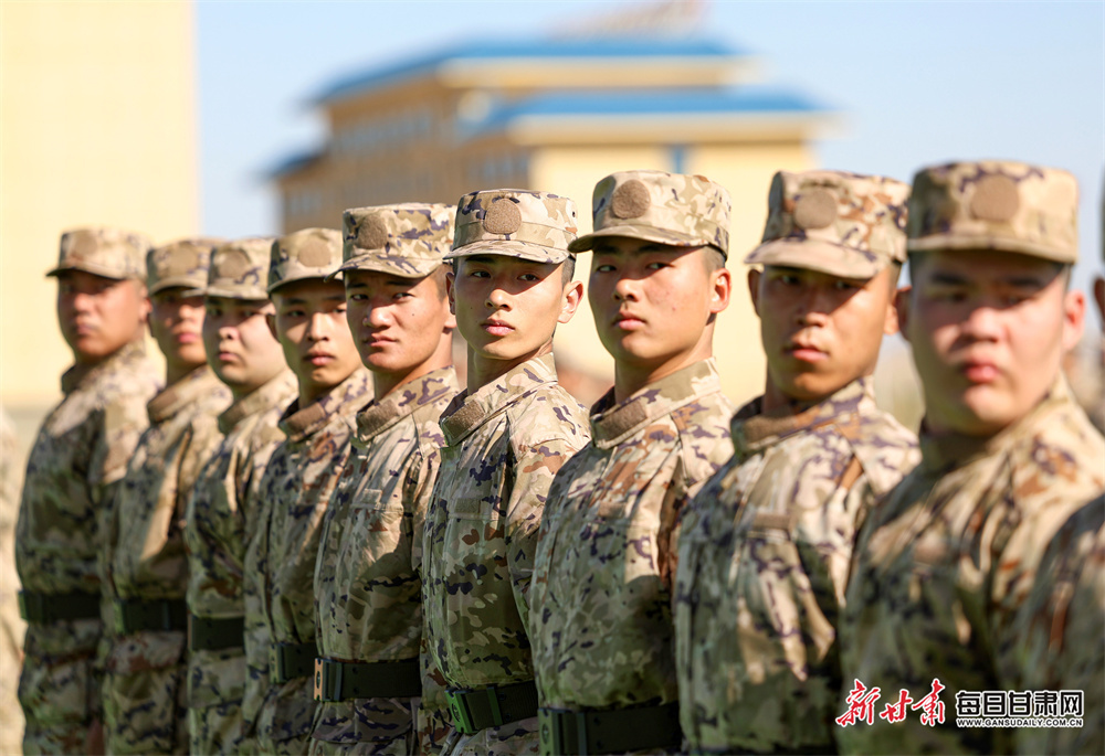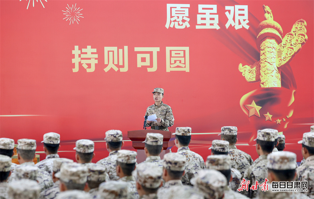 开训动员大会上,全体新兵军容严整,目光坚定。“在这里学会打仗,从这里走向战场。我们一定以优异的成绩交上一份满意的答卷!”他们用铿锵有力的话语做出庄严承诺,展现决心意志,树立远大理想。他们将在这里完成从地方青年到合格军人的转变。