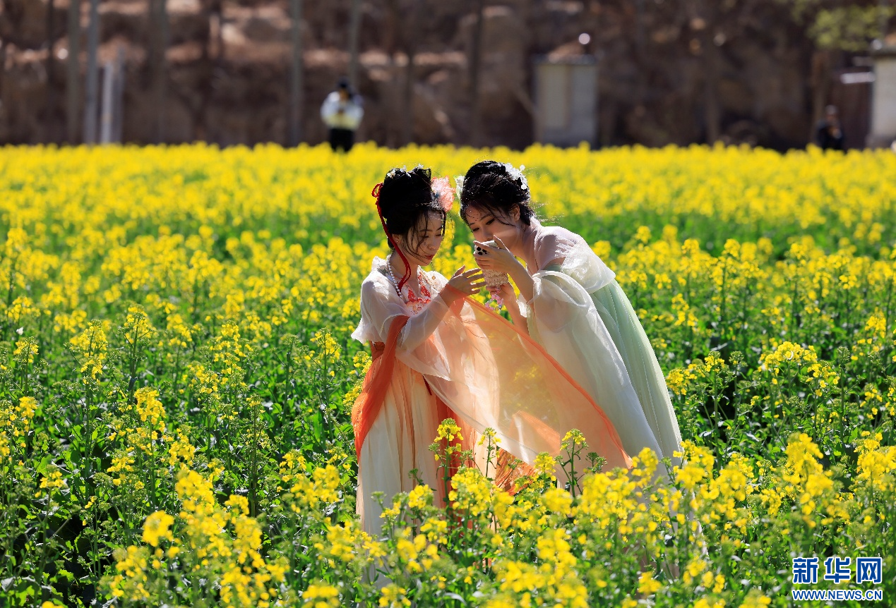 近日,甘肃省陇南市武都区白龙江河谷地带油菜花逐渐盛开,吸引众多游客前来踏青游赏。(视频:刘欣瑜 张嘉悦 拍摄:冉创昌 李董)