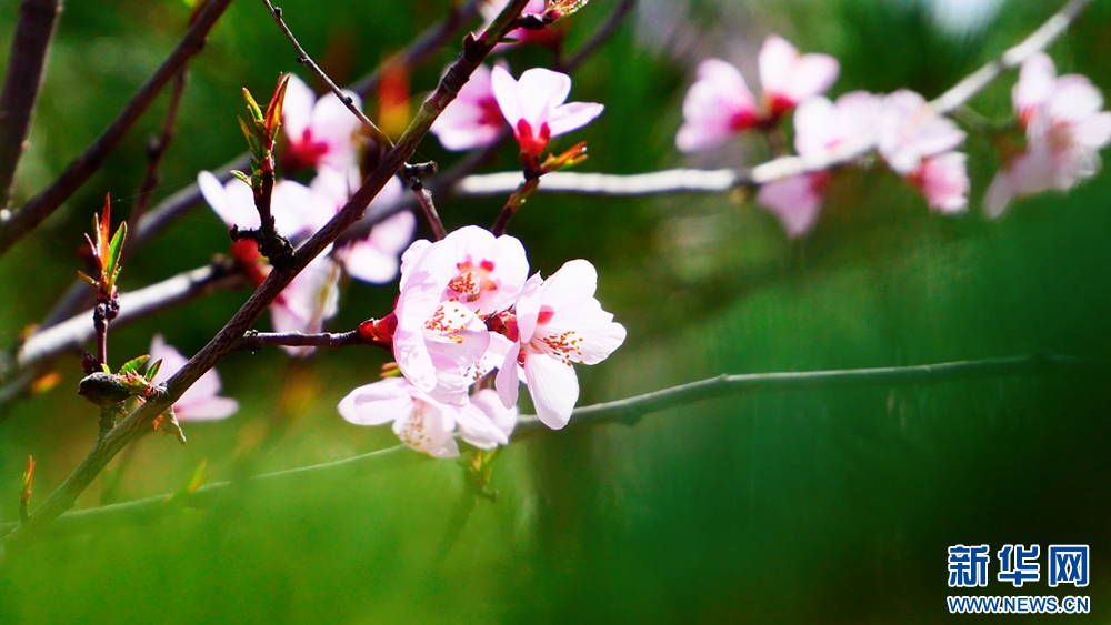 春风和煦,甘肃省平凉市崇信县漫山遍野的桃花竞相绽放。一团团、一簇簇,灿若云霞,微风徐来,芳香四溢,构成了一幅山乡春日美景图。新华网发(赵亚楠 摄)