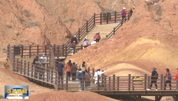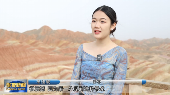 这个清明假期,张掖市各大景区迎来游客小高峰。张掖七彩丹霞景区吸引了不少游客前来感受大自然的神奇魅力,广西游客韦佳敏趁着清明小长假,与朋友一起来到丹霞景区游览,造型奇特、色彩斑斓的七彩丘陵,令她惊叹不已。