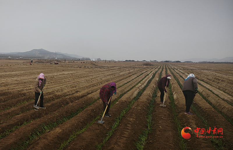 在崆峒区白水镇孟寨村深农集团千亩大葱种植基地,起垄开沟机在忙碌的工作,工人们正抢抓农时,熟练地将葱苗植入松软的土壤,进行大葱的移栽工作。一垄垄排列整齐的葱苗绿意盎然,在春日暖阳的照耀下充满生机。