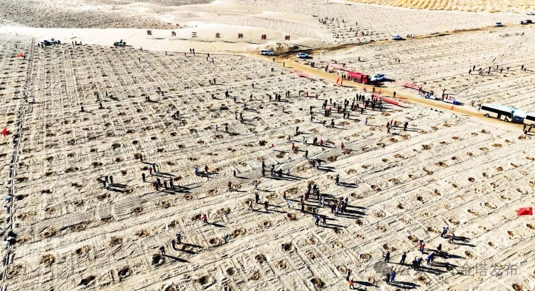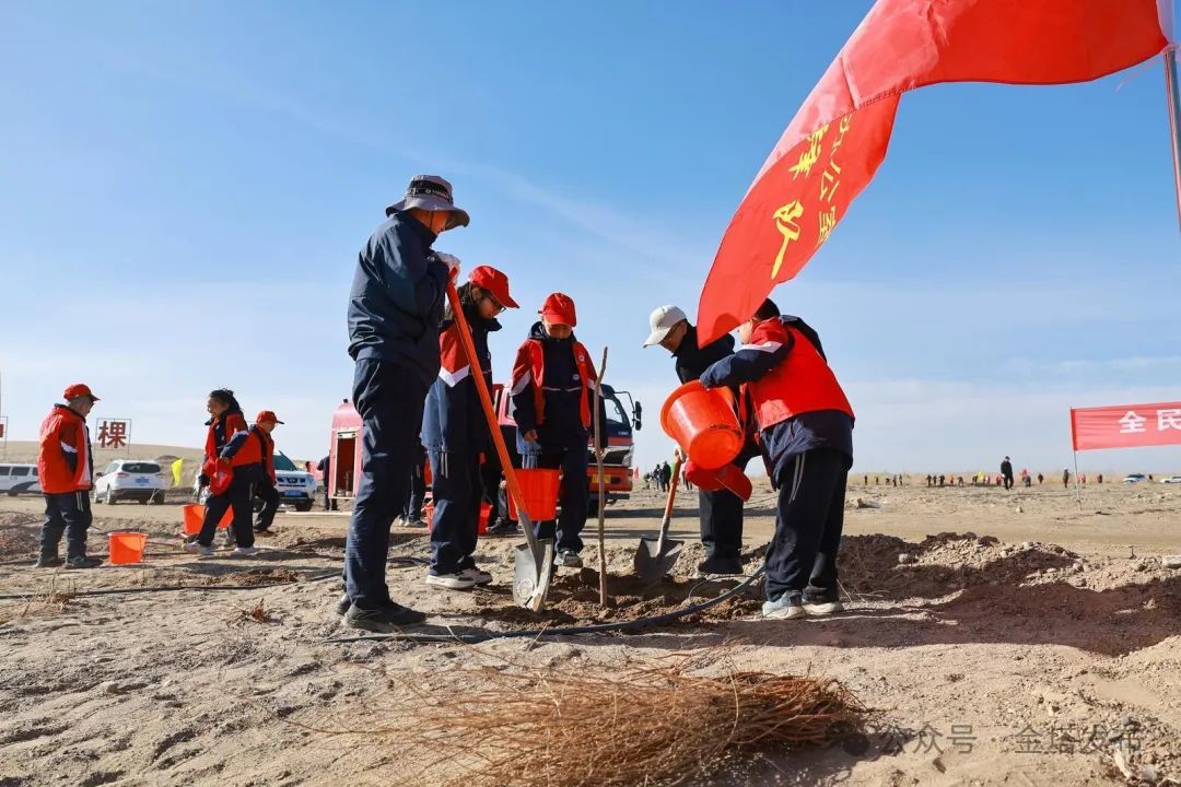 今天种下的每一棵树苗,都在为生态文明建设作贡献。近年来,金塔县扎实推进大规模国土绿化行动,全力打好“三北”工程攻坚战,截至目前,完成人工造林5.78万亩,工程固沙0.5万亩,草原修复治理5.54万亩,义务植树104万株以上,绿色通道114.6公里,农田林网78.7公里,造林绿化面积连续四年位居全市第一,金核公路沿线造林绿化项目被评为全市造林绿化样板工程,跑好了“三北”六期工程“第一棒”,增绿、护绿、活绿作用持续发挥……此次植树活动为金塔增添了一片新绿,也是金塔厚植生态底色、守住绿水青山的生动剪影。