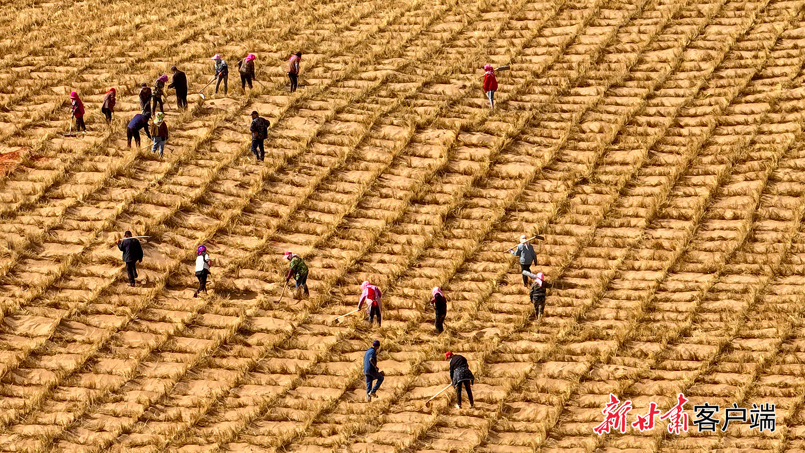 3月13日,高台县黑泉镇西沙窝“三北”工程防沙治沙项目现场,数百名“绿色使者”铺草压沙、挥锹栽苗,为沙漠“锁边”给“黄龙”系上“绿围脖”。新甘肃·甘肃日报通讯员 王将 刘秉刚