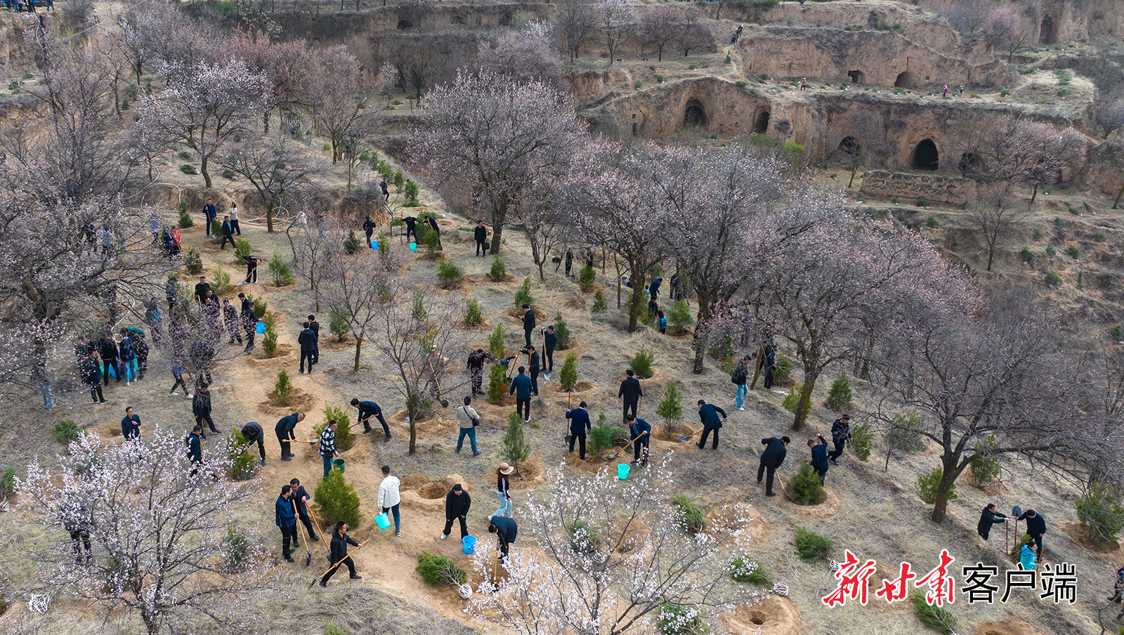 4月2日,环县甜水镇携手甘肃万胜矿业有限公司等驻甜水镇厂矿企业,开展春季义务植树活动,来自全镇的党员干部及志愿者等共400多人参加。新甘肃·甘肃日报通讯员 乔洁