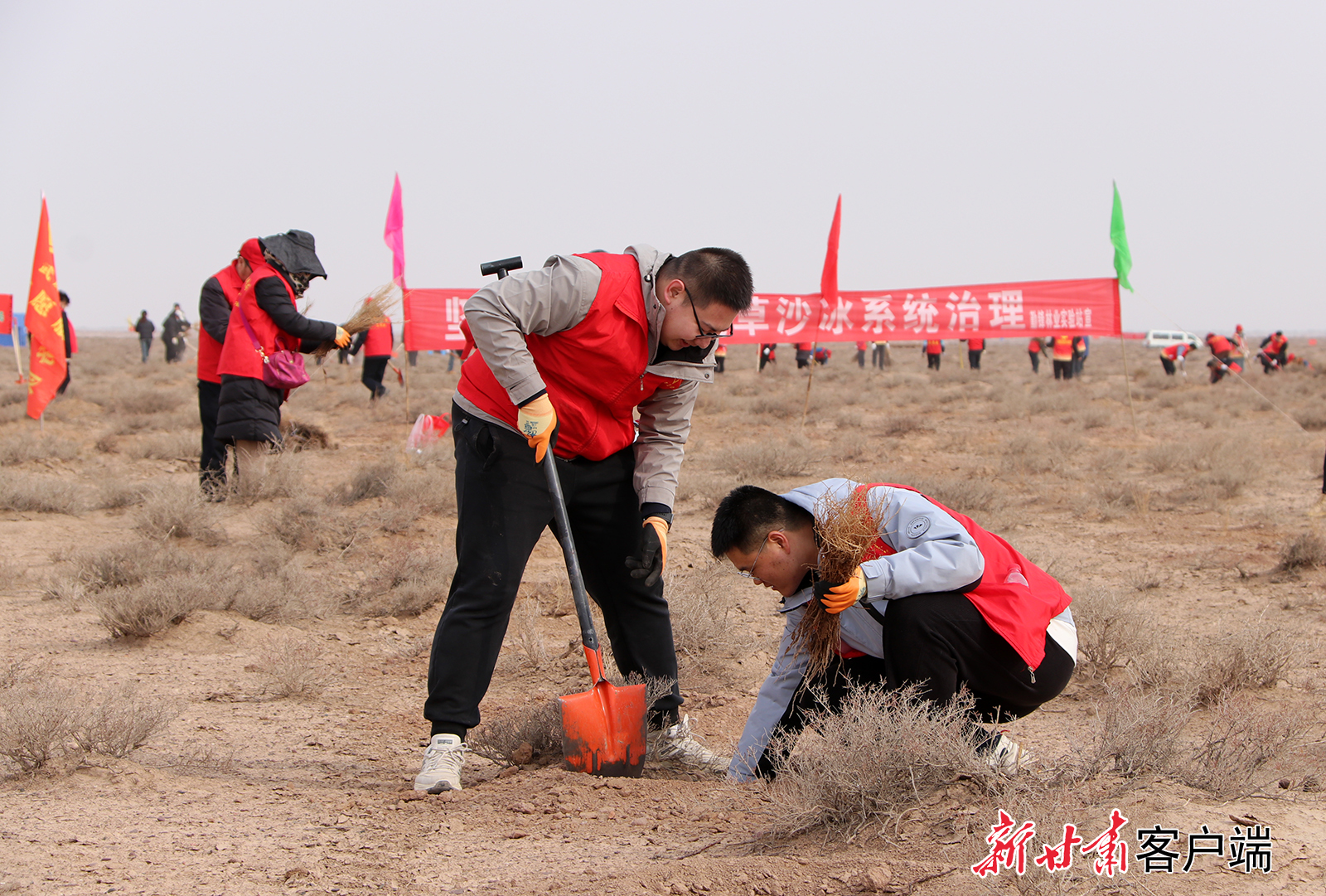 近日,“请到民勤种棵树”公益治沙活动在民勤县收成镇兴隆村治沙基地举行,来自全国各地的公益人士通过募捐、植树实践等形式,凝聚社会力量,助力荒漠化防治。新甘肃·甘肃日报记者 丁凯