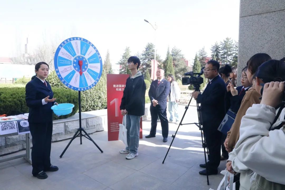 在国家安全教育主题展区,检察干警详细讲解了政法机关在维护国家安全领域所开展的不懈努力;“法治护航转盘”问答区的各类国家安全教育互动答题,在寓教于乐中强化了学生的国家安全意识和法治思维。