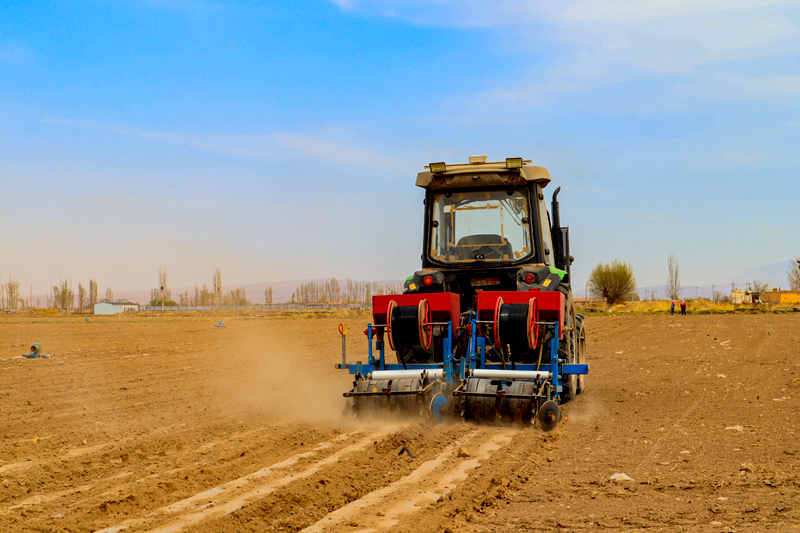 春季覆膜既能提升土壤温度、保持土壤水分,又能抑制杂草生长,为作物营造最佳的生长环境。在春耕现场,为进一步提高覆膜效率,采用现代化的北斗导航无人驾驶全覆膜联合作业机新技术,实现犁沟、覆膜、压土一体化精准作业,大幅降低时间和人工成本,有效提升了制种玉米种植全程的机械化水平。