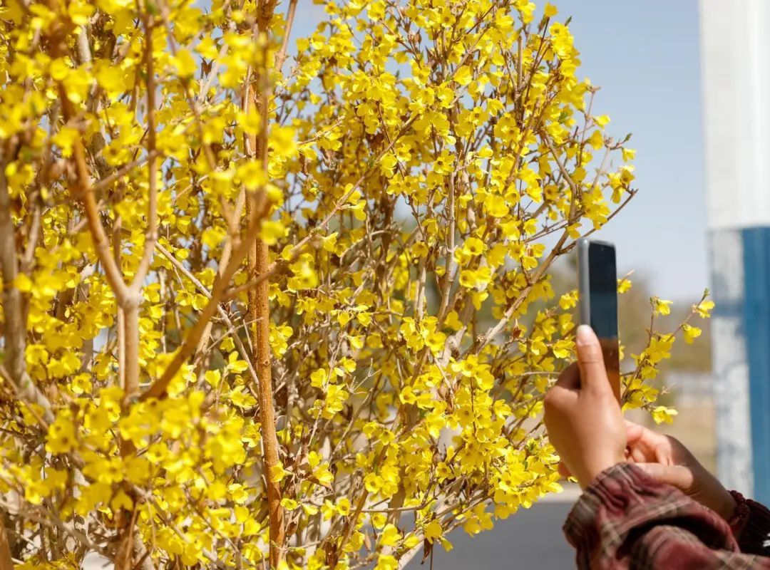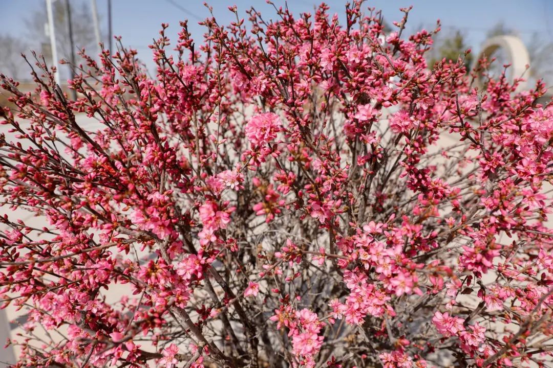古浪的春天带着苍松特有的泥土气息,轻轻唤醒盘踞枝头的万千花苞。杏花率先攀上枝头,粉白花瓣在枝头舒展,像被揉碎的云霞栖息在虬枝间。小游园里、道路两边,连翘、迎春花也不甘示弱,在暖阳的催促下挤挤挨挨携手绽放,鲜艳的花瓣簌簌颤动,抖落满枝往日的旧事。空气中的芳香也招来了小蜜蜂和蝴蝶,圆胖的蜜蜂裹着金粉忙碌采蜜,花蝶翩跹掠过花丛,为古浪的春日增添灵动气息。