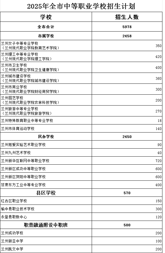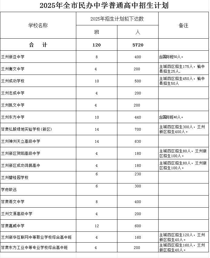 原标题:2025年兰州市高中阶段和城市四区初中招生计划公布