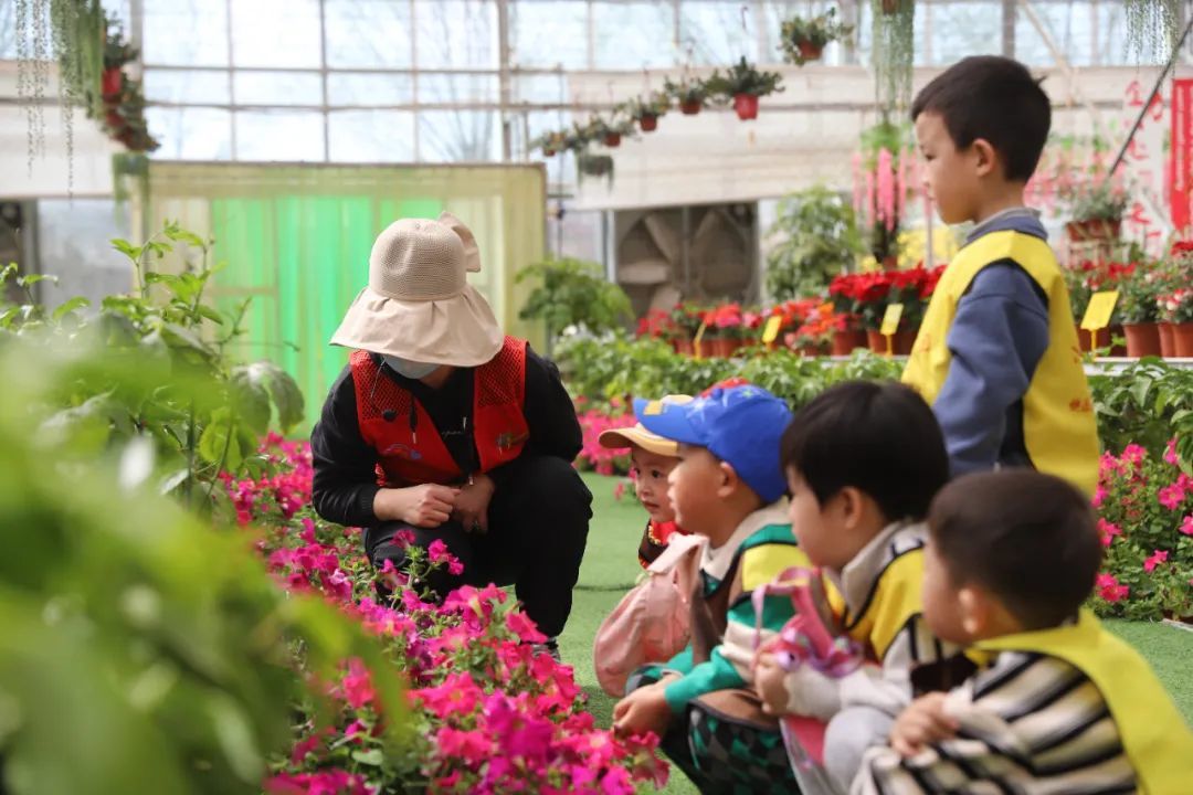 踏入花卉种植大棚,五彩斑斓的花朵瞬间吸引了孩子们的目光。红的像火,粉的像霞,白的像雪,繁花似锦,宛如梦幻的童话世界。孩子们兴奋地拉着老师的手,一连串问题脱口而出:“老师,这是什么花呀?”“它为什么开得这么漂亮?”稚嫩的声音里满是对未知的好奇。