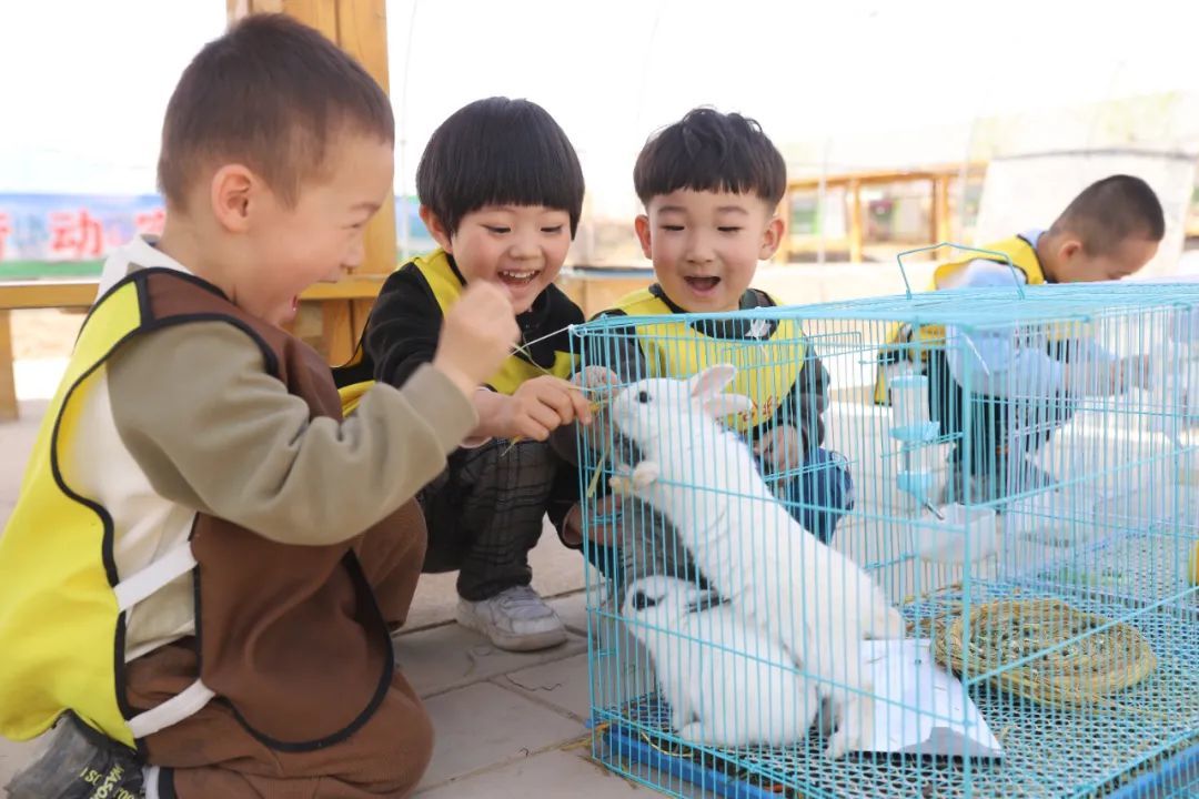 室外活动区域,欢声笑语此起彼伏。在动物养殖区,兔子雪白的绒毛、红宝石般的眼睛,鸽子咕咕叫着扇动翅膀,萌态十足。孩子们小心翼翼地拿着食物,轻轻投喂,看着小动物们吃得津津有味,脸上洋溢着灿烂纯真的笑容。