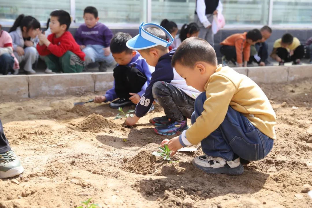 蔬菜种植区,孩子们迫不及待地“扑”进松软的土地里。他们拿起小锄头挖土,亲手种下一棵棵菜苗,再认真地浇水,每一个动作都充满了期待,仿佛种下的是满满的希望。