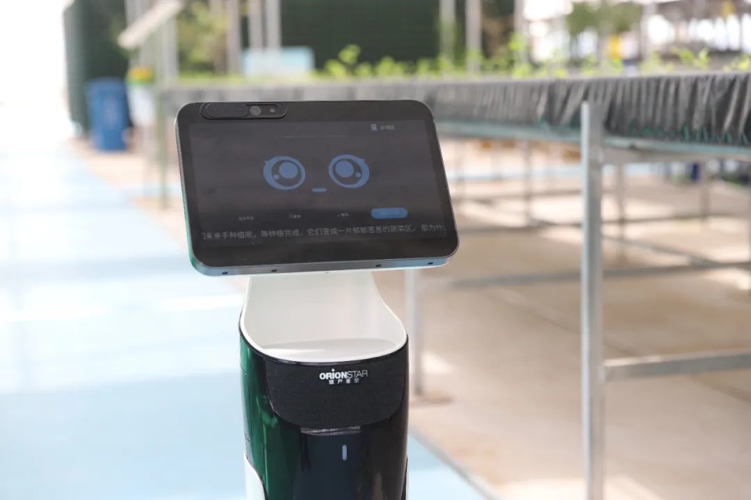 除了无土栽培的蔬菜,机器人讲解员“豹小蜜”更是让小朋友们大感兴趣,憨态可掬的“豹小蜜”讲起农业知识来头头是道,让孩子们移不开眼。