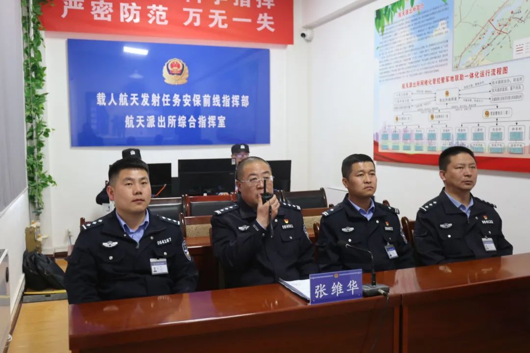 “神舟二十号”载人飞船发射时间恰逢“东方红一号”成功发射55周年纪念日及第十个“中国航天日”,意义特殊重大,全球瞩目,万众聚首。为确保发射任务圆满成功,任务前夕,酒泉、金塔两级公安机关主要领导带队与酒泉卫星发射中心对接安保任务,要求全面落细落实各项安保措施。金塔县公安局第一时间召开动员部署会,细化工作方案预案,在县公安局合成作战指挥中心设立综合调度指挥部,在航天派出所综合指挥室设立前线指挥部,组织警力提前开展实地勘察,对发射外围观测点地形、治安环境及人员情况进行全面摸排,通过定岗、定人、定责,压实工作职责。期间,市县两级公安机关主要领导深入一线指挥调度、现场督导,各专责组分工负责,扎实履职,确保神舟发射安保任务圆满成功。