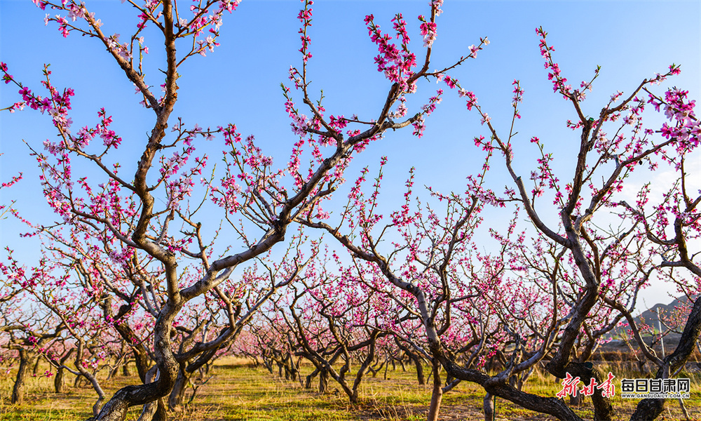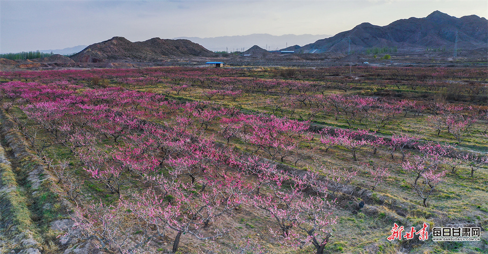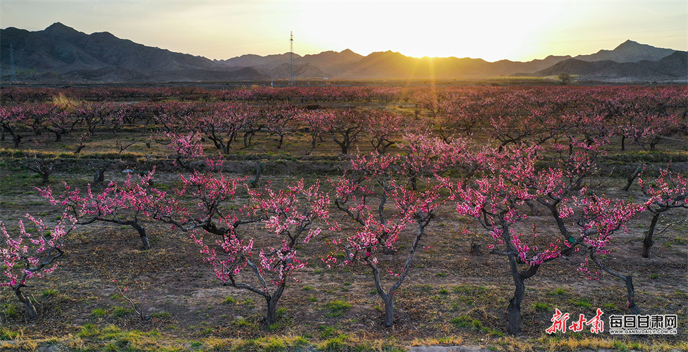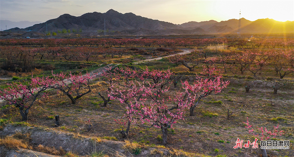 原标题:【陇原春色等你来拍】暮春鎏金染桃坞 景泰千亩桃林醉夕阳
