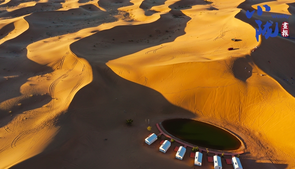 金色的沙漠广袤无垠,而“沙漠之眼”则透出诱人的绿色,星空房环绕其中。游客们可以在此自由漫步,在金色的沙丘间尽情唱跳,体验沙上乐趣;也可以骑乘沙漠摩托,在广阔的沙坡上尽情飞驰,感受驰骋的自由与快乐。