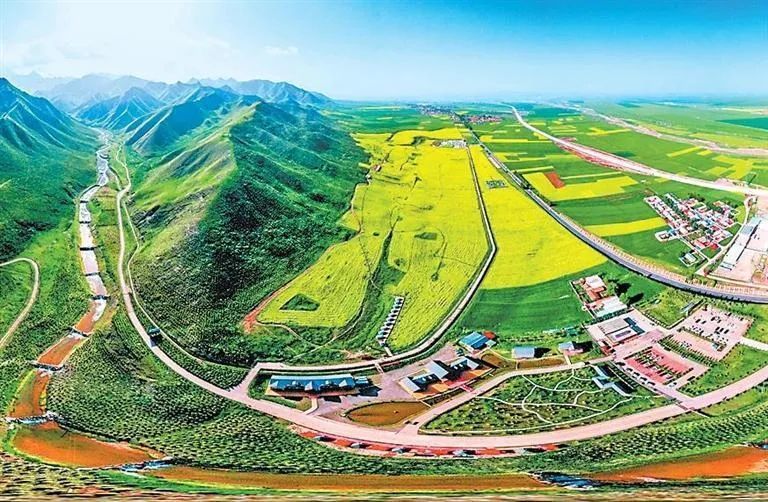 春日,沿着公路放眼望去,远处祁连山脉高峰耸立,近处连绵起伏的山峦高低错落,山间绿草如茵,色彩斑斓的野花星星点点播撒在绿草之中。最耀眼的当数这里的油菜花,处处可见金黄一片,成为河西走廊一道亮丽的风景线。