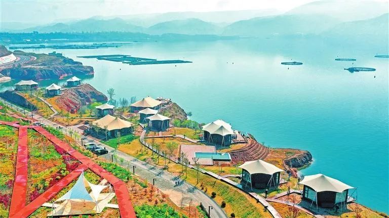 在露营基地来一场丰盛的下午茶,闲聊、玩桌游;当夜幕降临,来一场烟火味满满的草坪烧烤,各种美食铺在桌上,露营的氛围感被拉满。游客还可到周边中医药养生堂体验药茶、药膳,在杜梨峁观景台祈愿打卡。