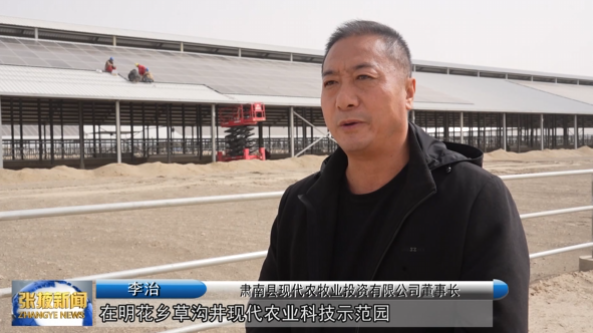 肃南县现代农业科技示范园万头牛场通过在牛棚上方搭建光伏板阵列,将太阳能光伏发电与传统畜牧业有机融合,构建了“牧光互补、一地两用”的新兴特色产业发展模式,实现了土地资源的立体式、高效化利用。