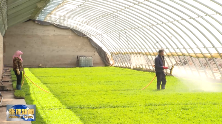 乡村振兴,产业是基础。张掖市全力拓展现代农业发展“六个空间”,持续发展壮大玉米制种、绿色蔬菜、张掖肉牛、优质奶业、戈壁节水生态农业5个百亿级产业集群,推动现代农业提质增效。走进临泽县沙河镇新合作百惠育苗基地,苗盘整齐排列、苗芽绽翠吐绿,工人有条不紊地进行着秧苗浇水、翻盘、分拣。