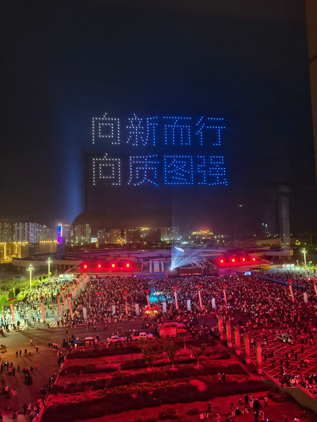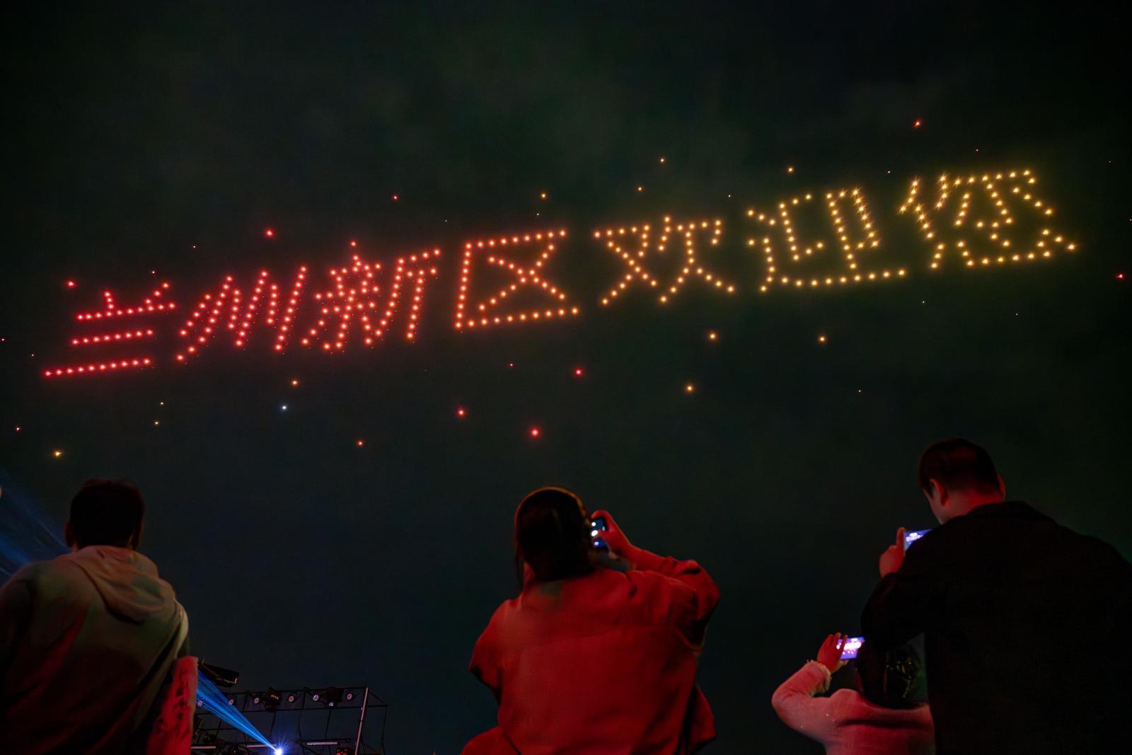 随后,无人机矩阵变幻为“科技自立自强”六个大字,在夜空中熠熠生辉。很快,随着音乐的变化,无人机群以光影勾勒出甘肃的地理轮廓,并伴以“创新 新区 驱动 未来”的字样,点亮夜空。观众王先生表示:“创新是新区发展的灵魂,看到这样的表演,我对新区的未来更加充满信心!”