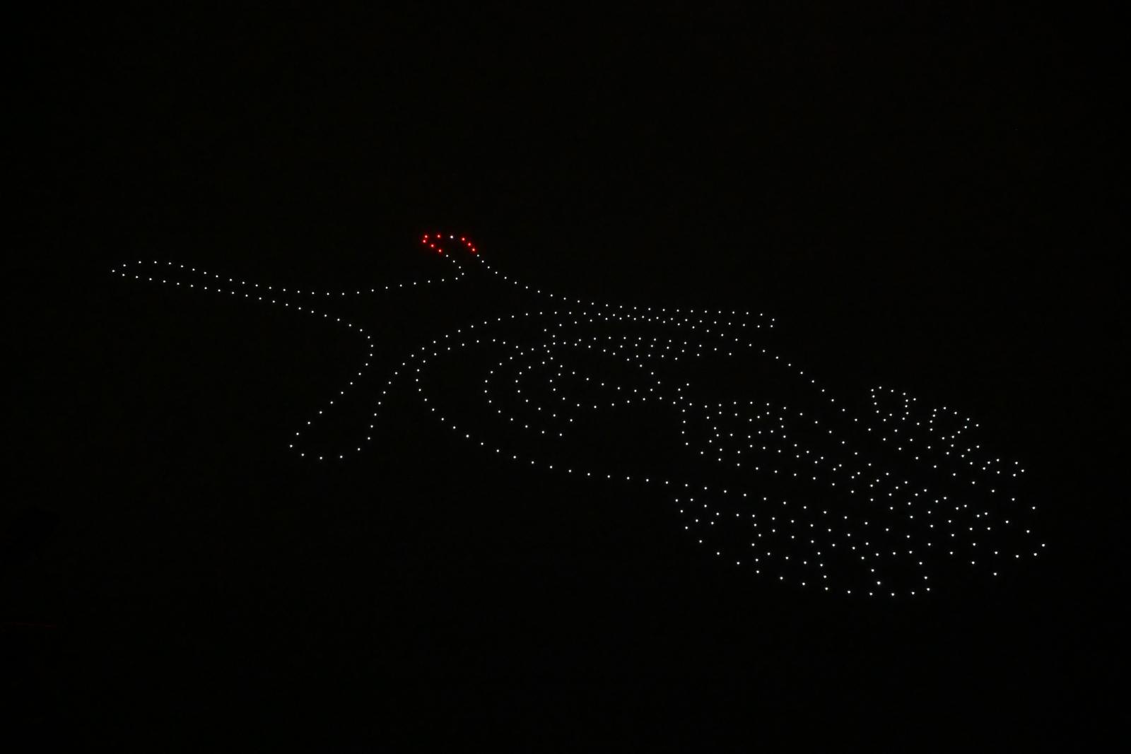 压轴的无人机矩阵表演将活动推向高潮。夜空中,500架在夜空中组成震撼矩阵,用点点星光书写科技诗篇,随着音乐的节奏不断变换阵型。表演伊始,无人机矩阵在夜空中精准排列,逐渐勾勒出一面鲜艳的五星红旗。红,是热血的凝聚;星,是荣耀的象征。当国旗图案在苍穹中高悬,现场数万名观众齐声欢呼,纷纷举起手机记录这一震撼瞬间。“看到国旗的那一刻,我内心涌起一股强烈的自豪感!”市民李女士激动地说。