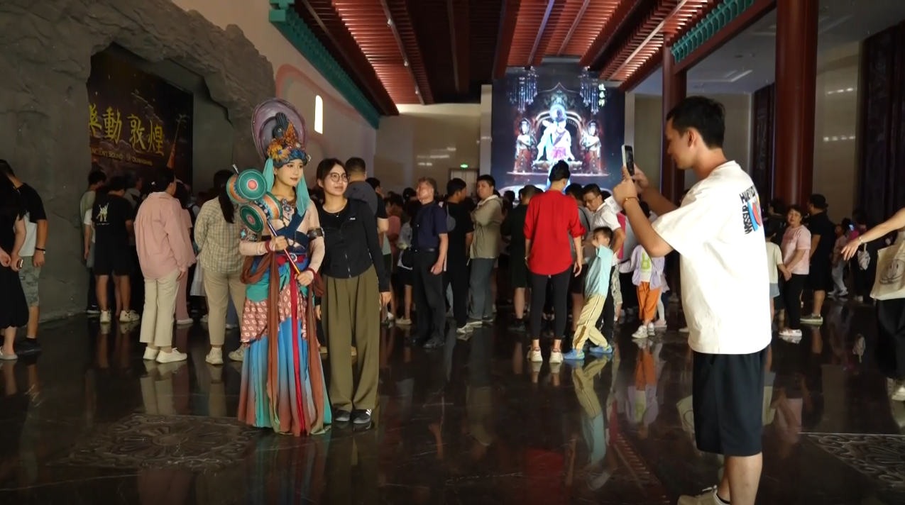 《乐动敦煌》作为全球首部洞窟式沉浸体验剧,借助全息投影、3D威亚等技术,回溯敦煌古乐文化,展现东西方音乐交融的魅力。当前,敦煌旅游迎来高峰,该剧目每日演出4场次,五一期间游客观演热情高涨,演出场次最高达到8场。